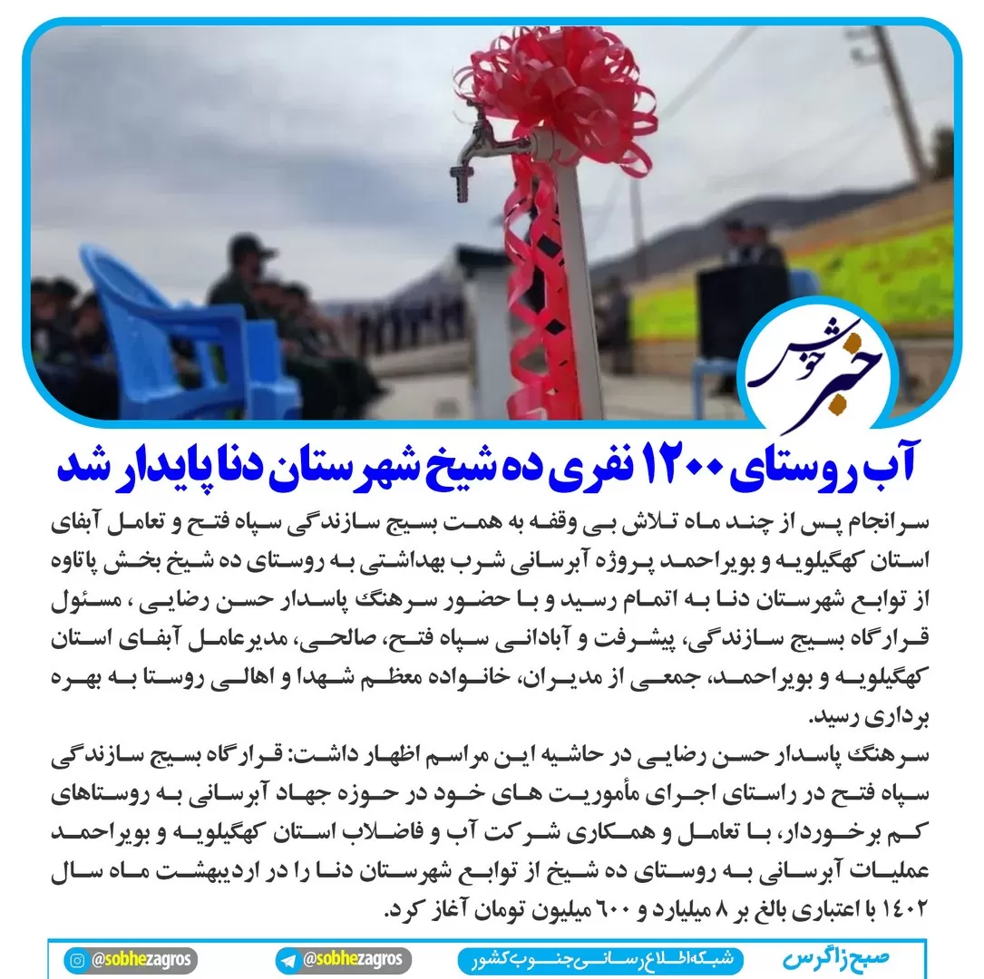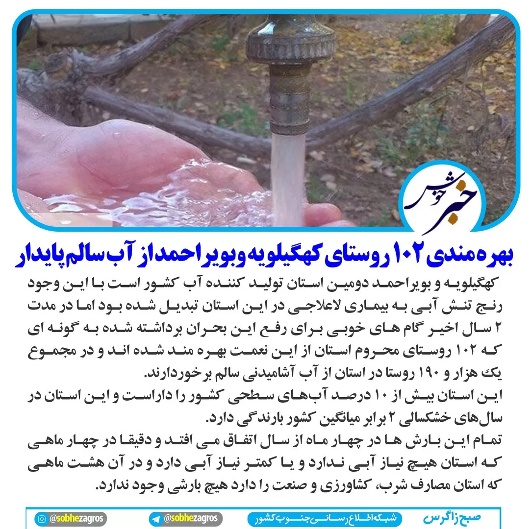 خبرهای خوش صبح زاگرس برگرفته از به ثمر رسیدن کارها و پروژههای عمرانی در استان کهگیلویه و بویراحمد است.
