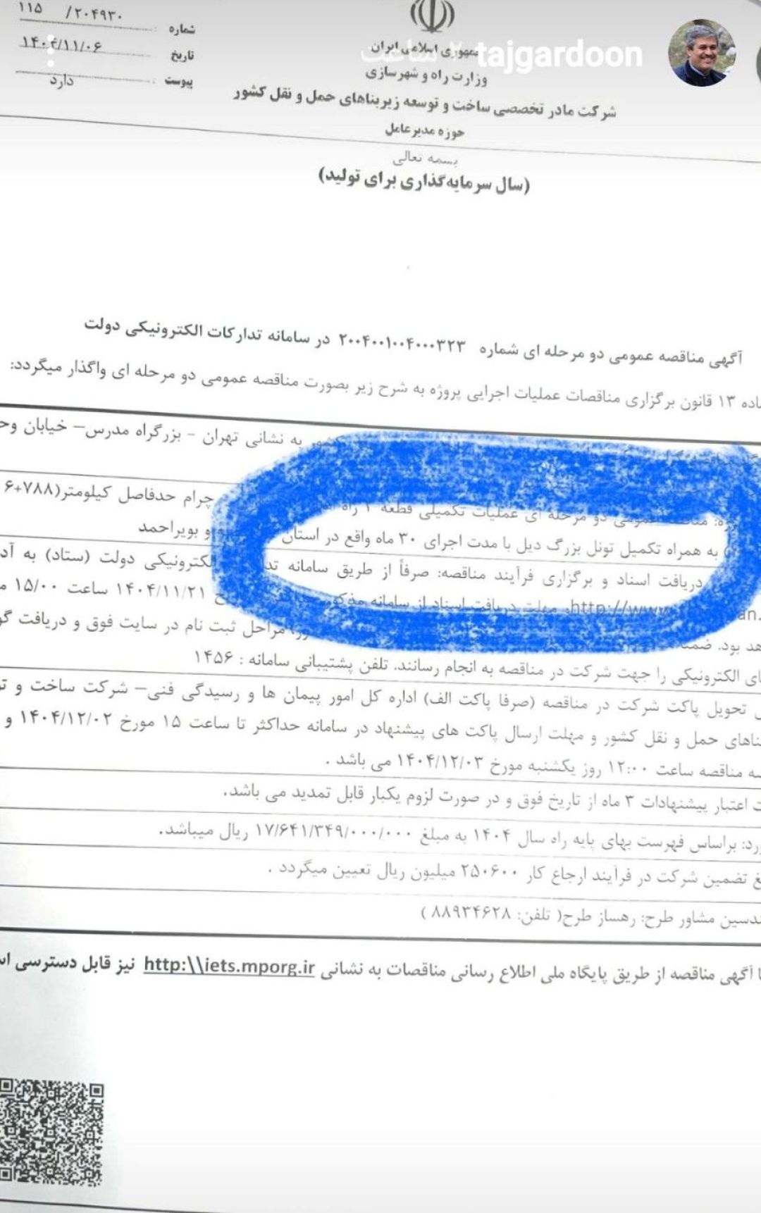 آخرین وضعیت «تونل دیل» از قول تاجگردون