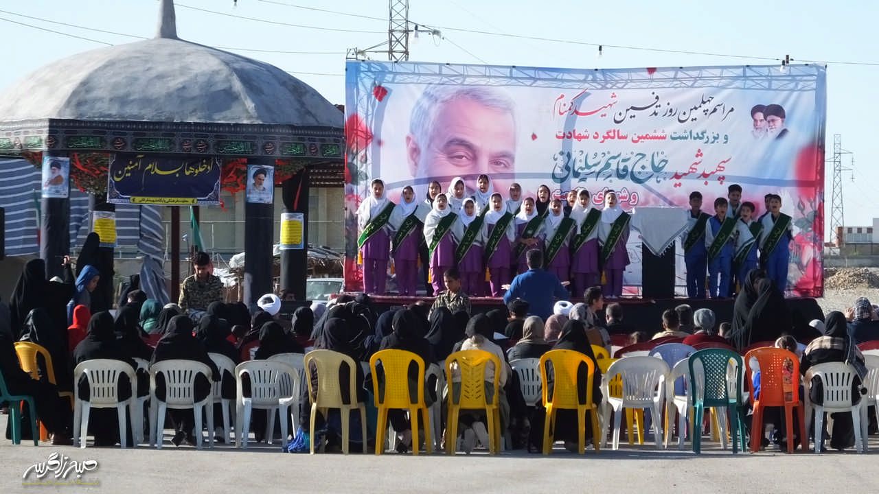 همزمان با چهلمین روز خاکسپاری شهید گمنام و ششمین سالگرد شهادت سپهبد شهید حاج قاسم سلیمانی، آیین باشکوه اربعین این شهید والامقام با حضور گسترده مردم مؤمن، بسیجیان و خانوادههای شهدا در روستای تلخاب شیرین گچساران برگزار شد.