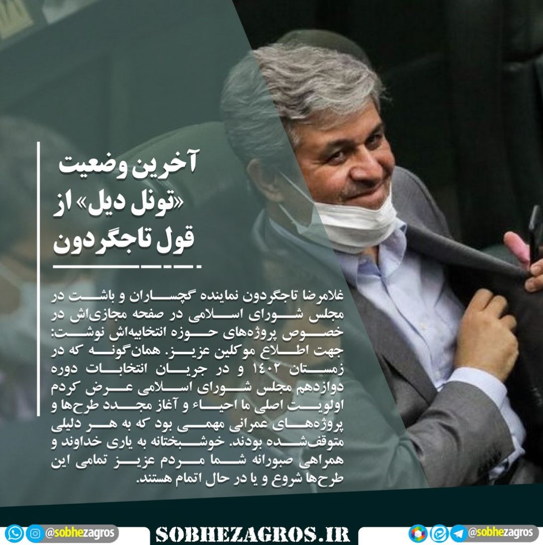نماینده گچساران و باشت در مجلس شورای اسلامی، با انتشار مطلبی در صفحه مجازیاش، آخرین وضعیت پروژههای عمرانی گچساران بهویژه پروژه تونل دیل و طرح آبرسانی از سد چمشیر را تشریح کرد و از آغاز مجدد طرحهای متوقفشده خبر داد.(اینجا)
