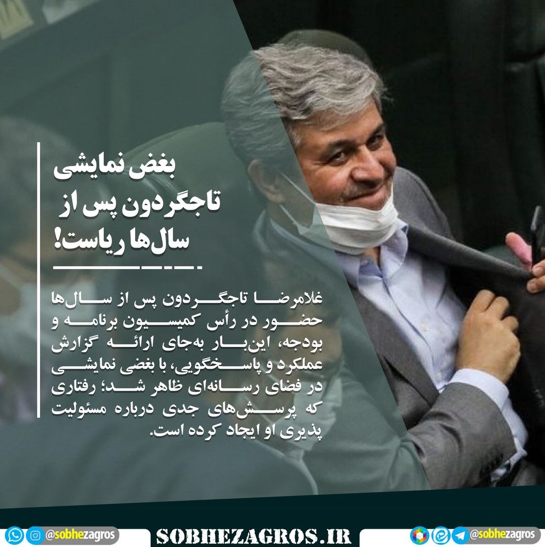 غلامرضا تاجگردون پس از سالها حضور در رأس کمیسیون برنامه و بودجه، اینبار بهجای ارائه گزارش عملکرد و پاسخگویی، با بغضی نمایشی در فضای رسانهای ظاهر شد؛ رفتاری که پرسشهای جدی درباره مسئولیتپذیری او ایجاد کرده است.(اینجا)