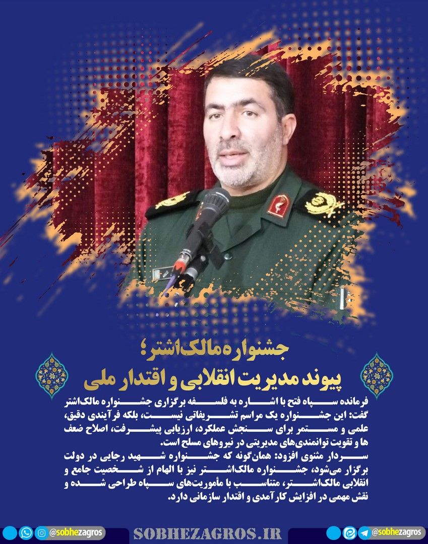 فرمانده سپاه فتح کهگیلویهوبویراحمد گفت: جشنواره مالکاشتر تجلی مدیریت انقلابی و عاملی مؤثر در تقویت قدرت ملی و صیانت از دستاوردهای انقلاب اسلامی در برابر توطئههای دشمنان است.(اینجا)