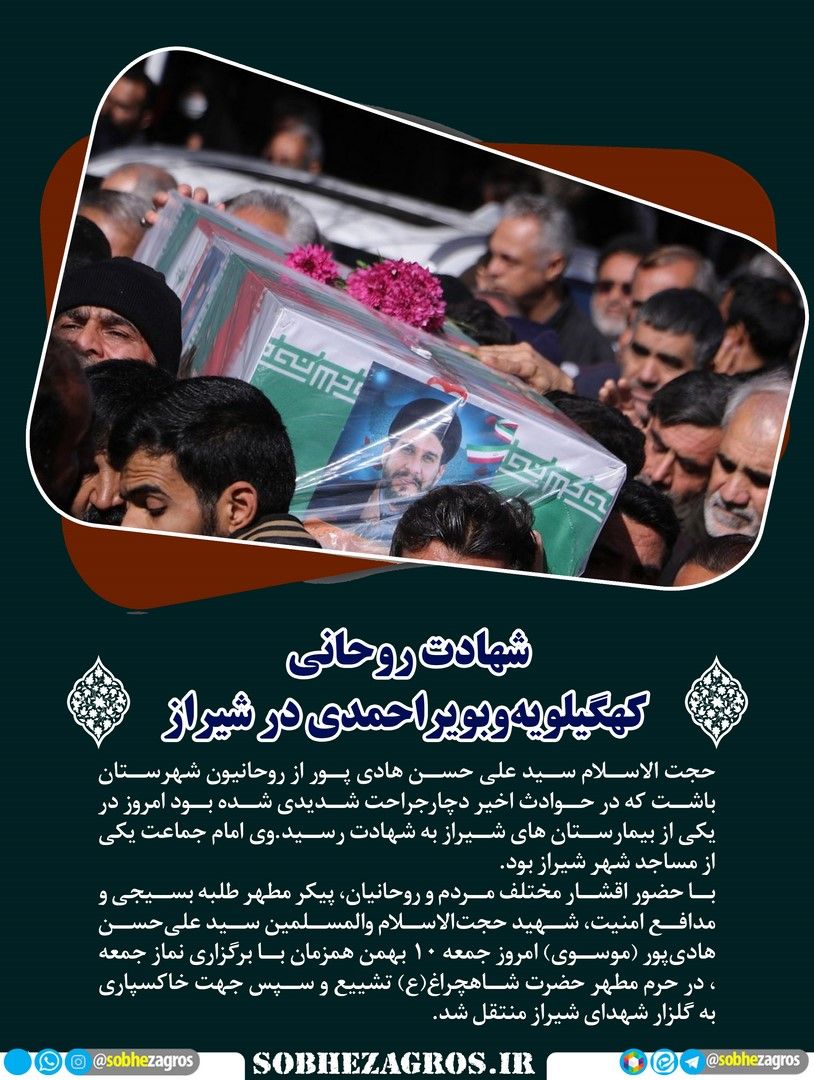 حجت الاسلام سید علی حسن هادی پور از روحانیون شهرستان باشت که در حوادث اخیر دچارجراحت شدیدی شده بود در یکی از بیمارستان های شیراز به شهادت رسید.وی امام جماعت یکی از مساجد شهر شیراز بود(اینجا)