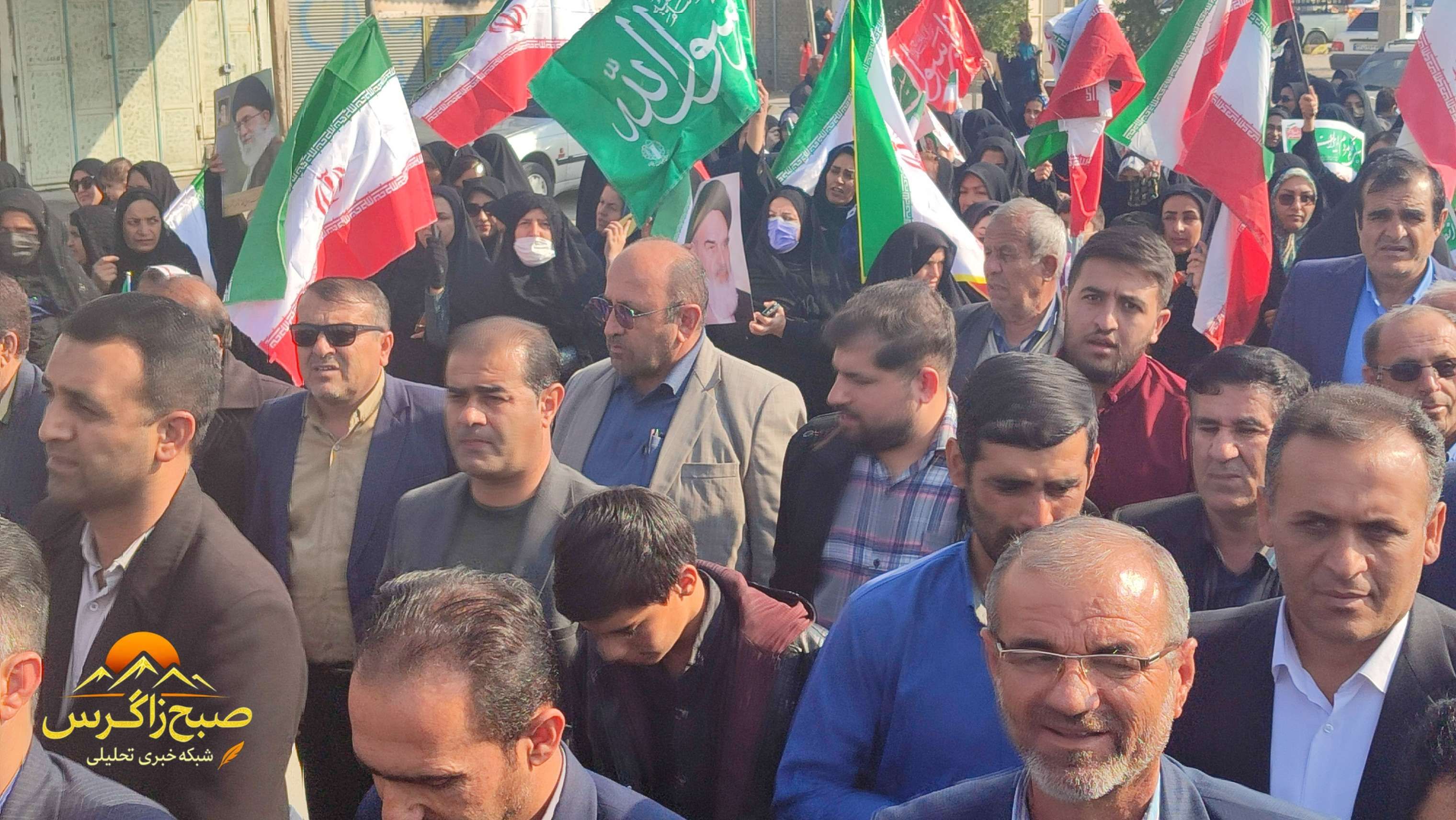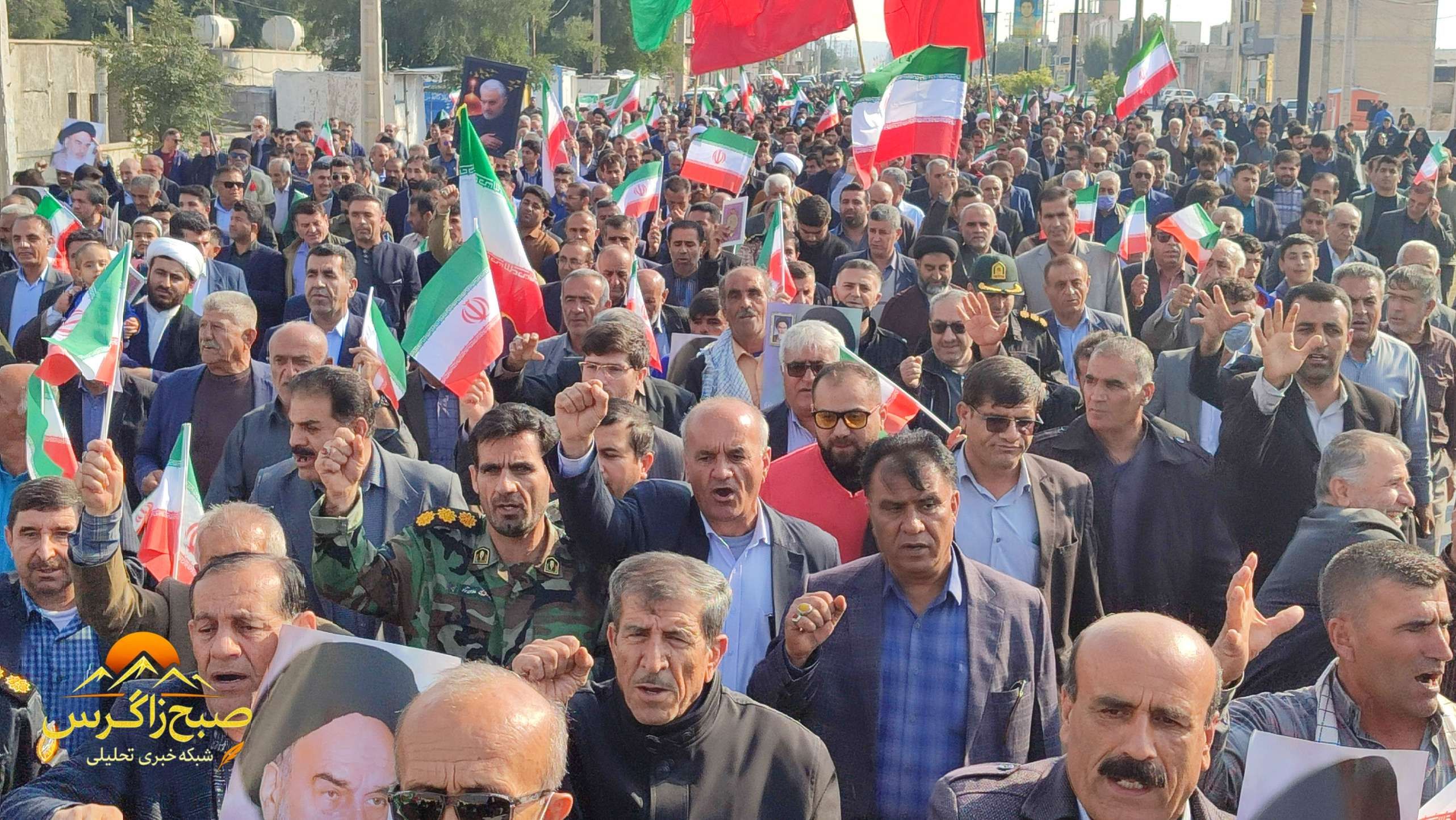 به گزارش پایگاه خبری تحلیلی «صبح زاگرس» مردم همیشه در صحنه شهر لیکک مرکز شهرستان بهمئی ظهر امروز بیست و دوم دی ماه سال ۱۴۰۴ با حضور در خیابانهای این شهر اعلام انزجار و برائت خود را از آشوبگران و تروریست های مسلح اعلام و با صدای رسای اعلام کردند پای انقلاب خواهد ماند و از کیان این مرز و بوم در برابر این تروریستها دفاع خواهند کرد.
