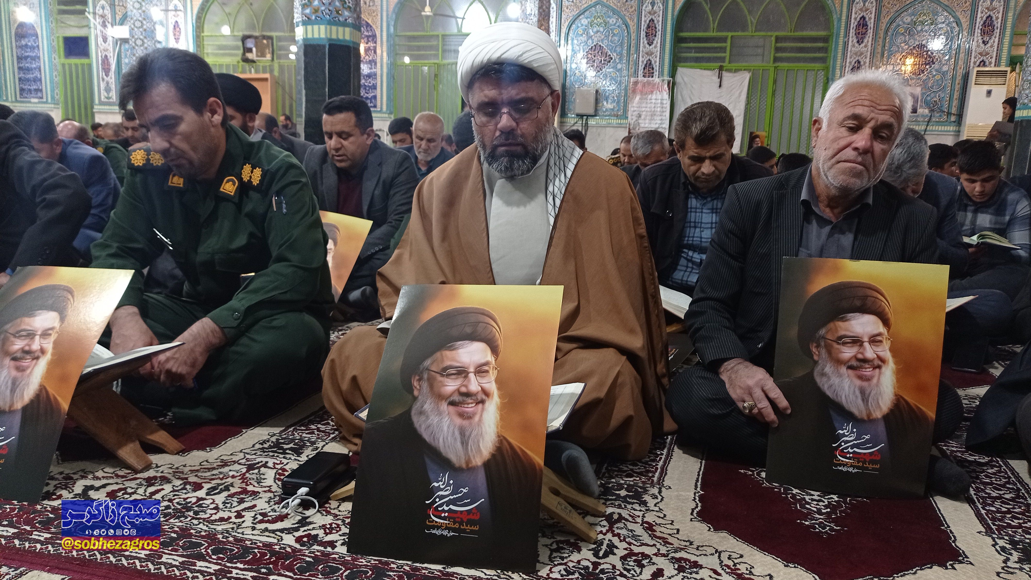 به گزارش پایگاه خبری تحلیلی «صبح زاگرس»؛ مراسم گرامیداشت شهدای مقاومت همزمان با تشییع پیکر شهیدان سید حسن نصرالله و شهید سید هاشم صفی الدین با حضور قشرهای مختلف مردم و مسؤلان در مسجد صاحبالزمان(عج) برگزار شد.
