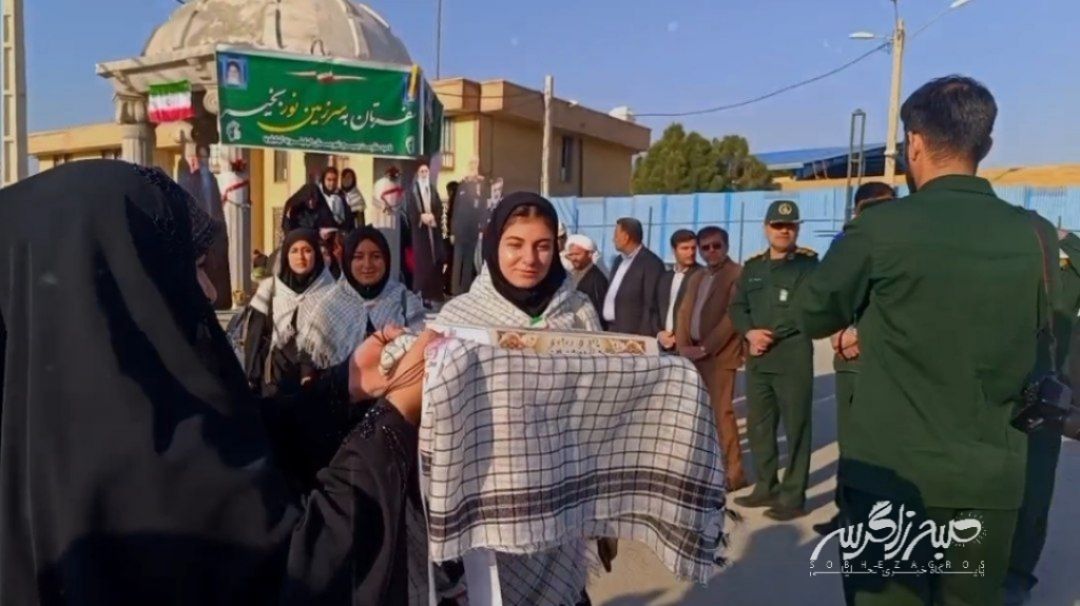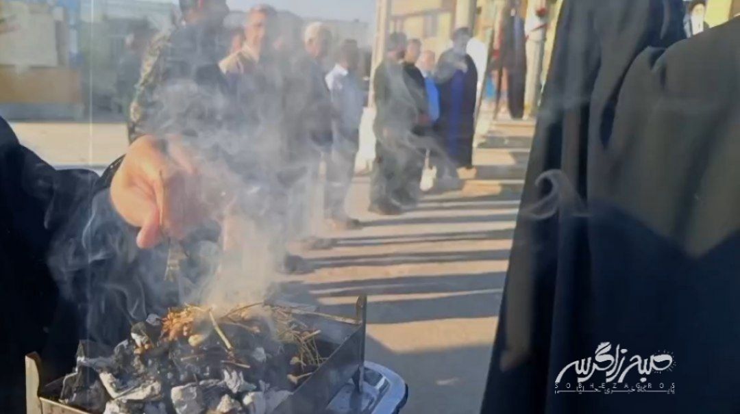 یکی از دانشآموزان با اسپند در دست، فضای اطراف را معطر میکرد و دیگری با دمنوش گرم و شیرینی، از حاضران پذیرایی مینمود؛ نمادی از مهماننوازی و مهر نسل جوان. صدای صلوات، فضای محوطه را پر کرده بود و نگاهها به افق دوخته شده بود؛ افقی که مقصد آن، خاکی بود آغشته به خون شهیدان.