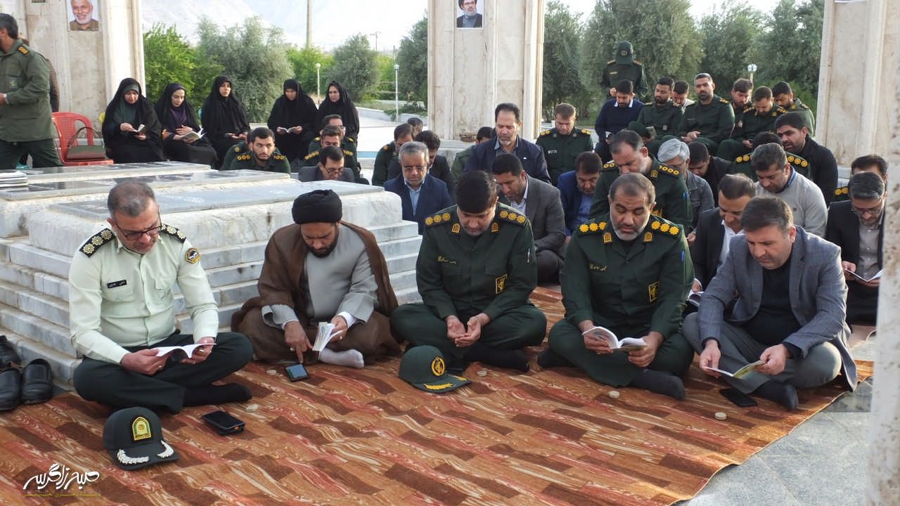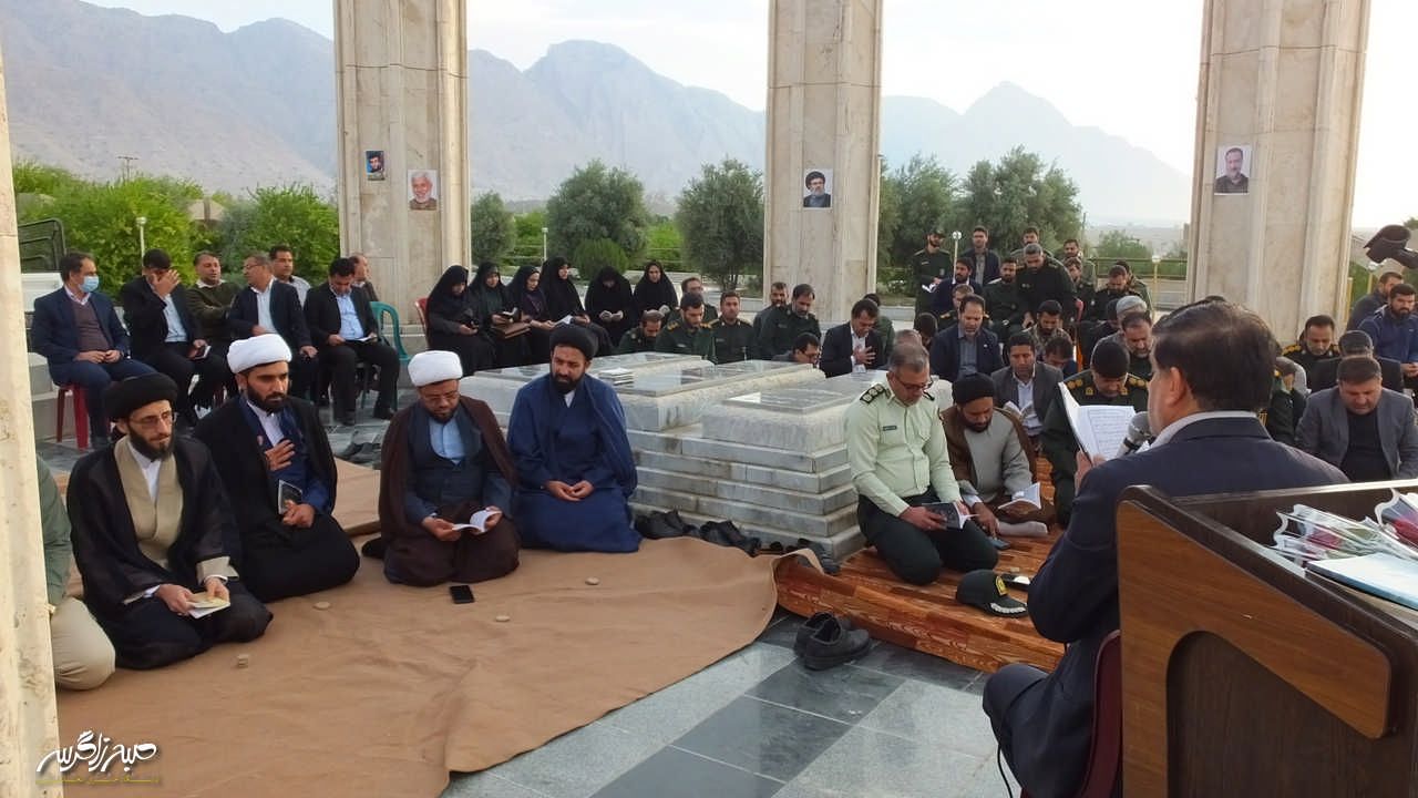 شرکتکنندگان در این مراسم با قرائت زیارت عاشورا، فاتحه و نثار گل، یاد و نام شهدای هشت سال دفاع مقدس و ایثارگران انقلاب اسلامی را گرامی داشتند و بر لزوم ادامهدادن راه آنان در مسیر تربیت نسل مؤمن، بصیر و انقلابی تأکید کردند.