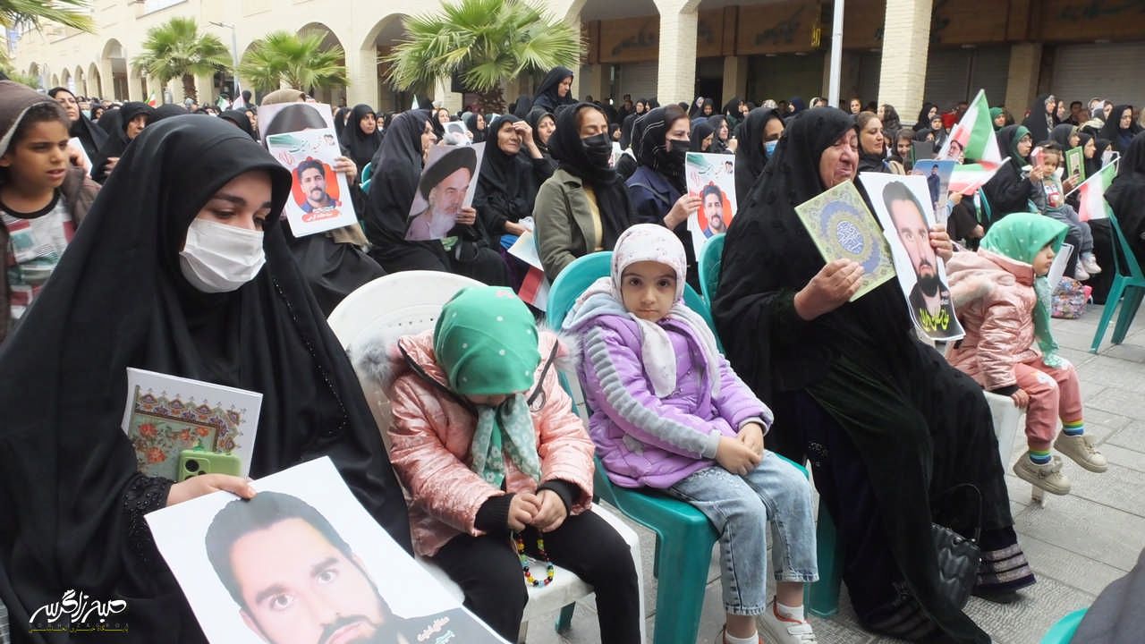 حضور جوانان و نوجوانان در کنار بزرگسالان و خانوادهها، جلوهای خاص به این مراسم بخشیده بود و پلاکاردهایی با تصاویر رهبر انقلاب و شهدای مدافع امنیت گچساران در دست مردم دیده میشد.