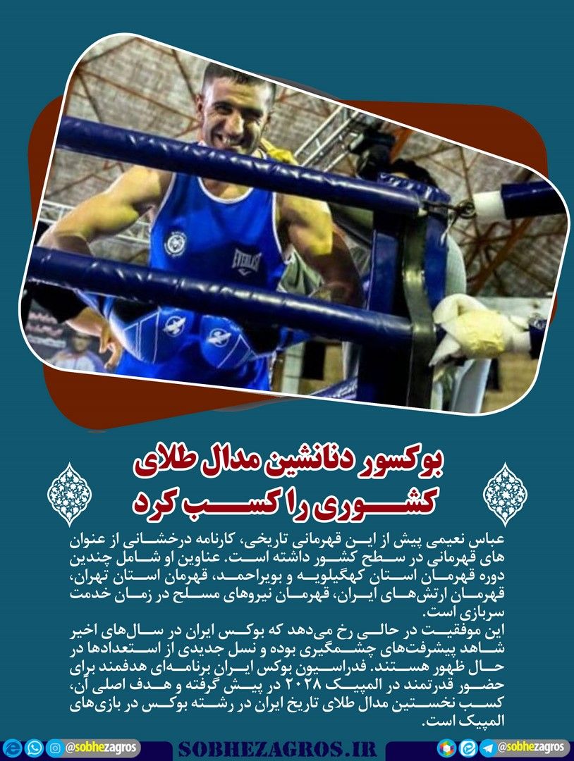عباس نعیمی متولد ۱۳۷۹ و بوکسور وزن ۷۵ کیلوگرم، با درخشش در مسابقات قهرمانی بوکس بزرگسالان کشور موفق شد برای نخستین بار در تاریخ استان کهگیلویه و بویراحمد، مدال طلای این رقابتها را به دست آورد.(اینجا)