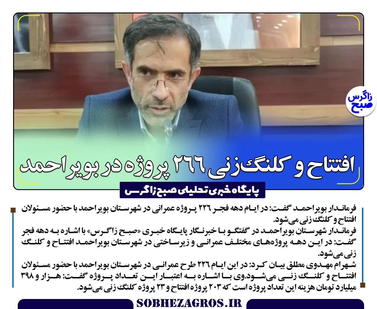 به گزارش پایگاه خبری تحلیلی «صبح زاگرس»،روایتی متفاوت از کهگیلویهوبویراحمد در انقلاب اسلامی،عزل فرمانداران و مدیرانکل بعد از انتخابات باشد،افتتاح و کلنگزنی 266 پروژه در بویراحمد،تذکر جدی استاندار کهگیلویه وبویراحمد به نامزدهای انتخابات وتابوی قلدری آمریکا در منطقه شکست خورده است از جمله عکس نوشته های صبح زاگرس است.