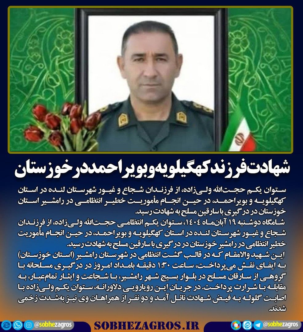 ستوان یکم حجتالله ولیزاده، از فرزندان شجاع و غیور شهرستان لنده در استان کهگیلویه و بویراحمد، در حین انجام مأموریت خطیر انتظامی در رامشیر استان خوزستان در درگیری با سارقین مسلح به شهادت رسید.(اینجا)