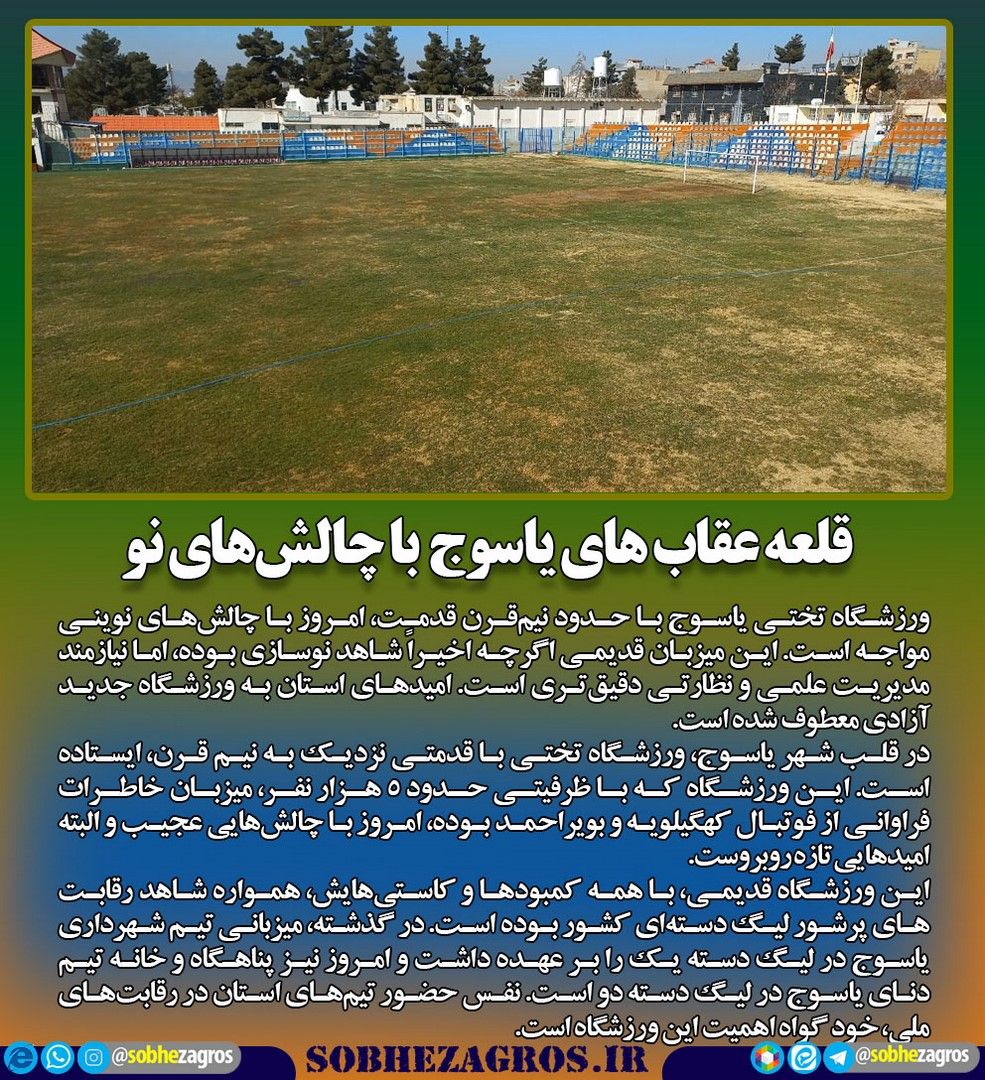 ورزشگاه تختی یاسوج با حدود نیمقرن قدمت، امروز با چالشهای نوینی مواجه است. این میزبان قدیمی اگرچه اخیراً شاهد نوسازی بوده، اما نیازمند مدیریت علمی و نظارتی دقیقتری است. امیدهای استان به ورزشگاه جدید آزادی معطوف شده است.(اینجا)