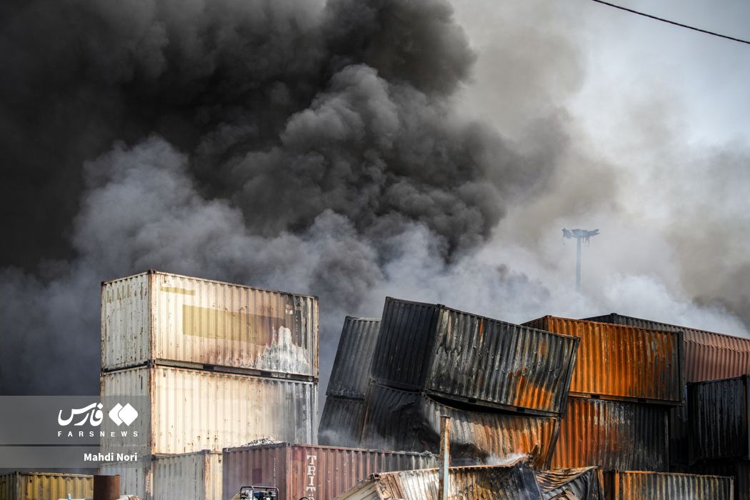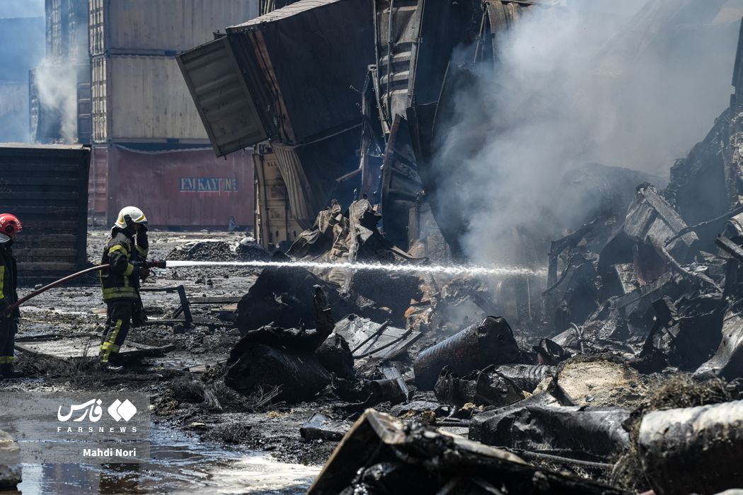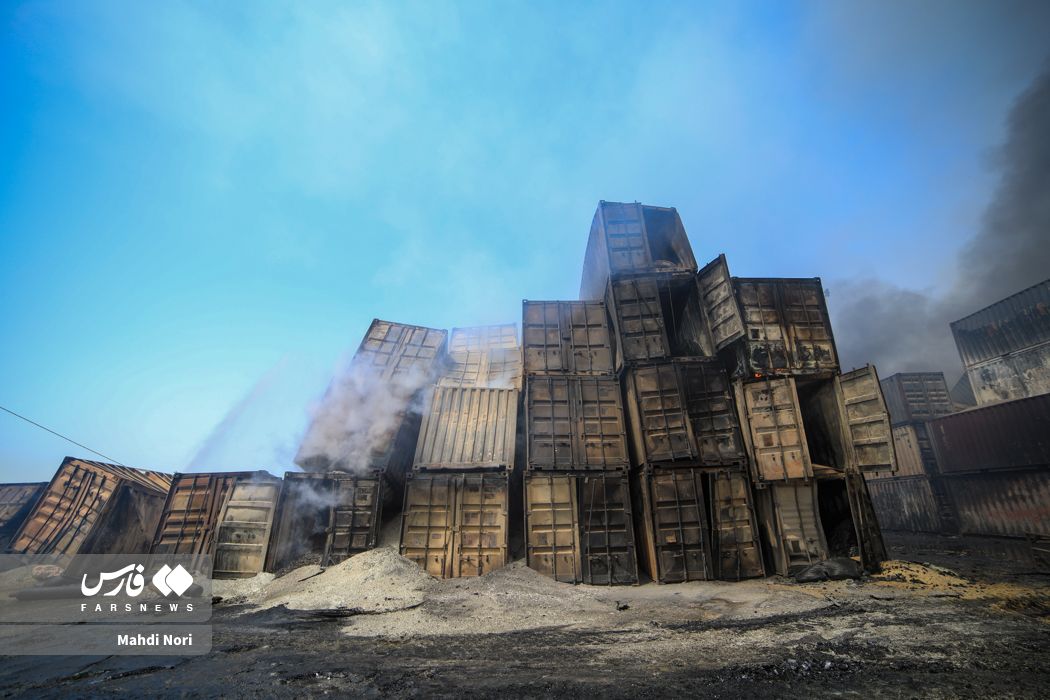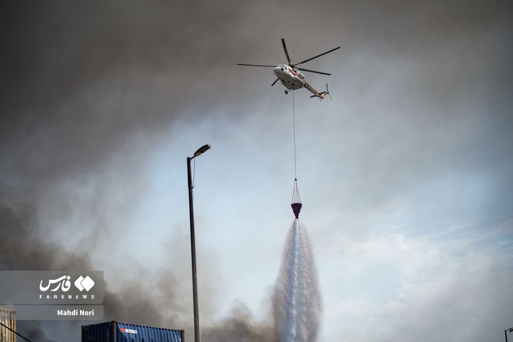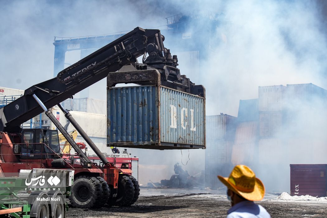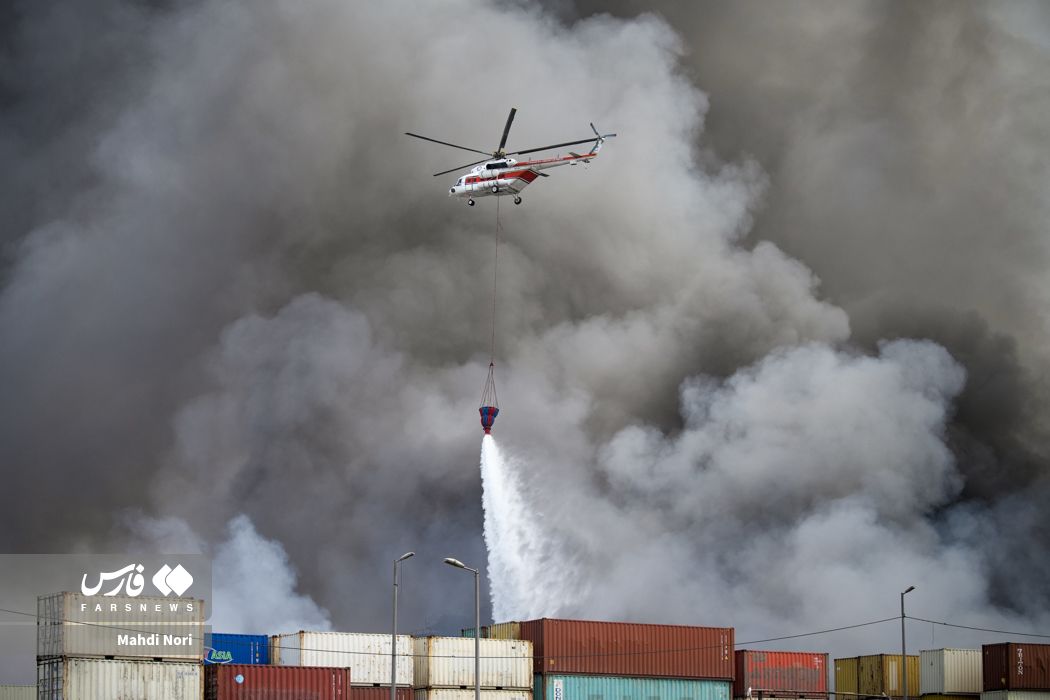 امدادگران اسکله شهید رجایی با تلاش بیوقفه و عملیات اطفای هوایی، در حال مهار آتشسوزی و کاهش خسارات ناشی از آن هستند.