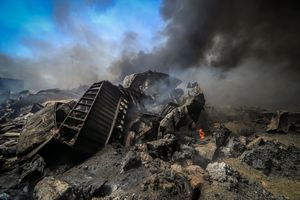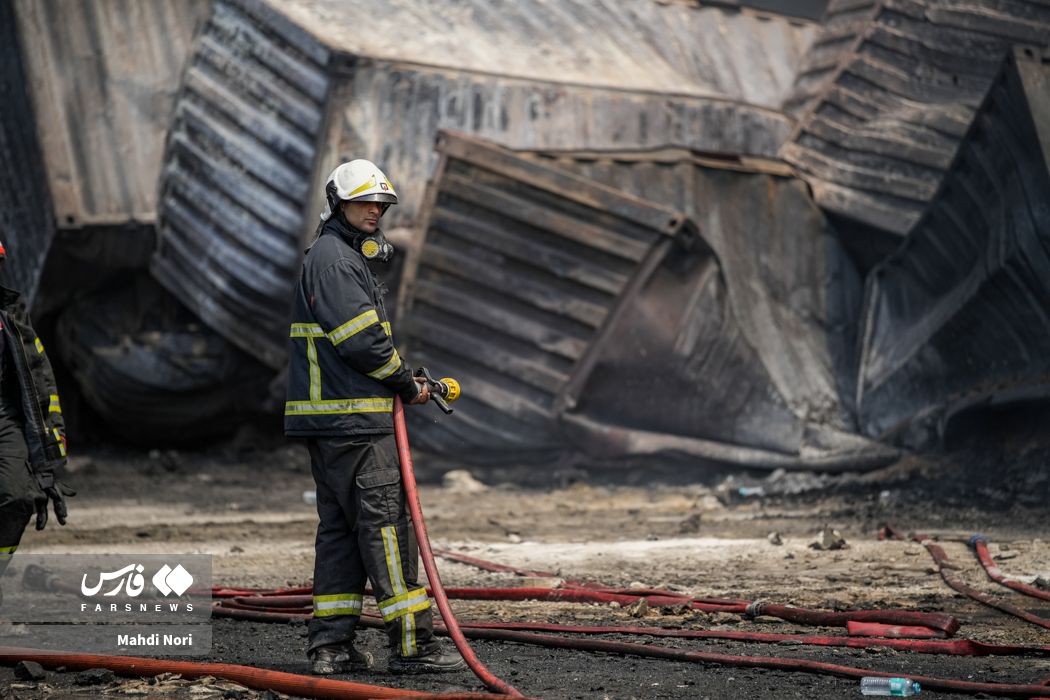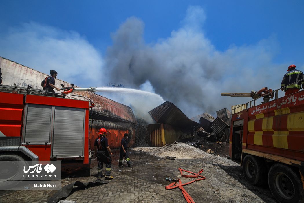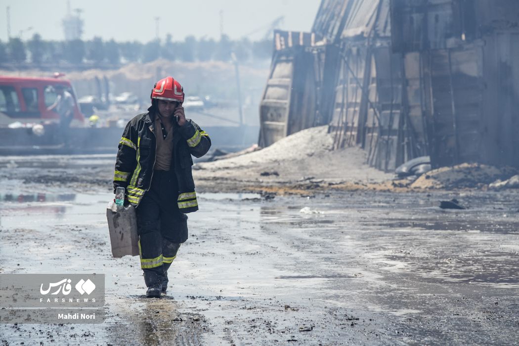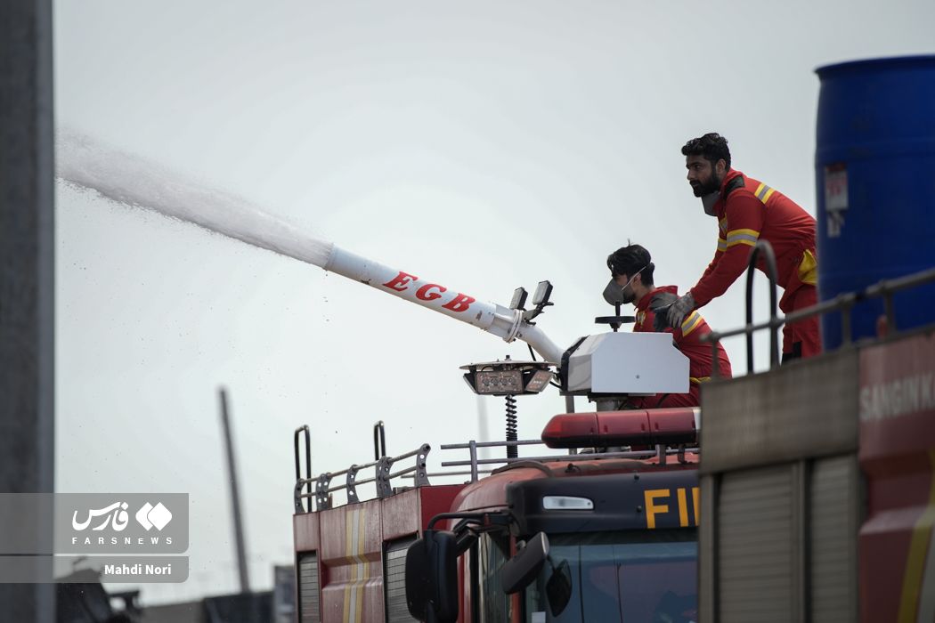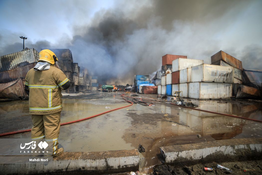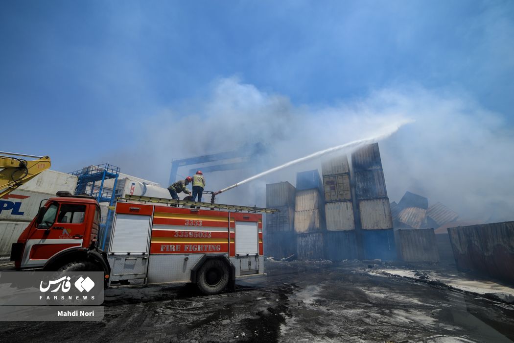 امدادگران اسکله شهید رجایی با تلاش بیوقفه و عملیات اطفای هوایی، در حال مهار آتشسوزی و کاهش خسارات ناشی از آن هستند.