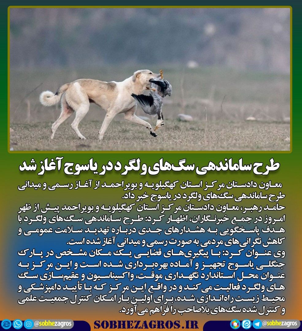 معاون دادستان مرکز استان کهگیلویه و بویراحمد از آغاز رسمی و میدانی طرح ساماندهی سگهای ولگرد در یاسوج خبر داد.(اینجا)