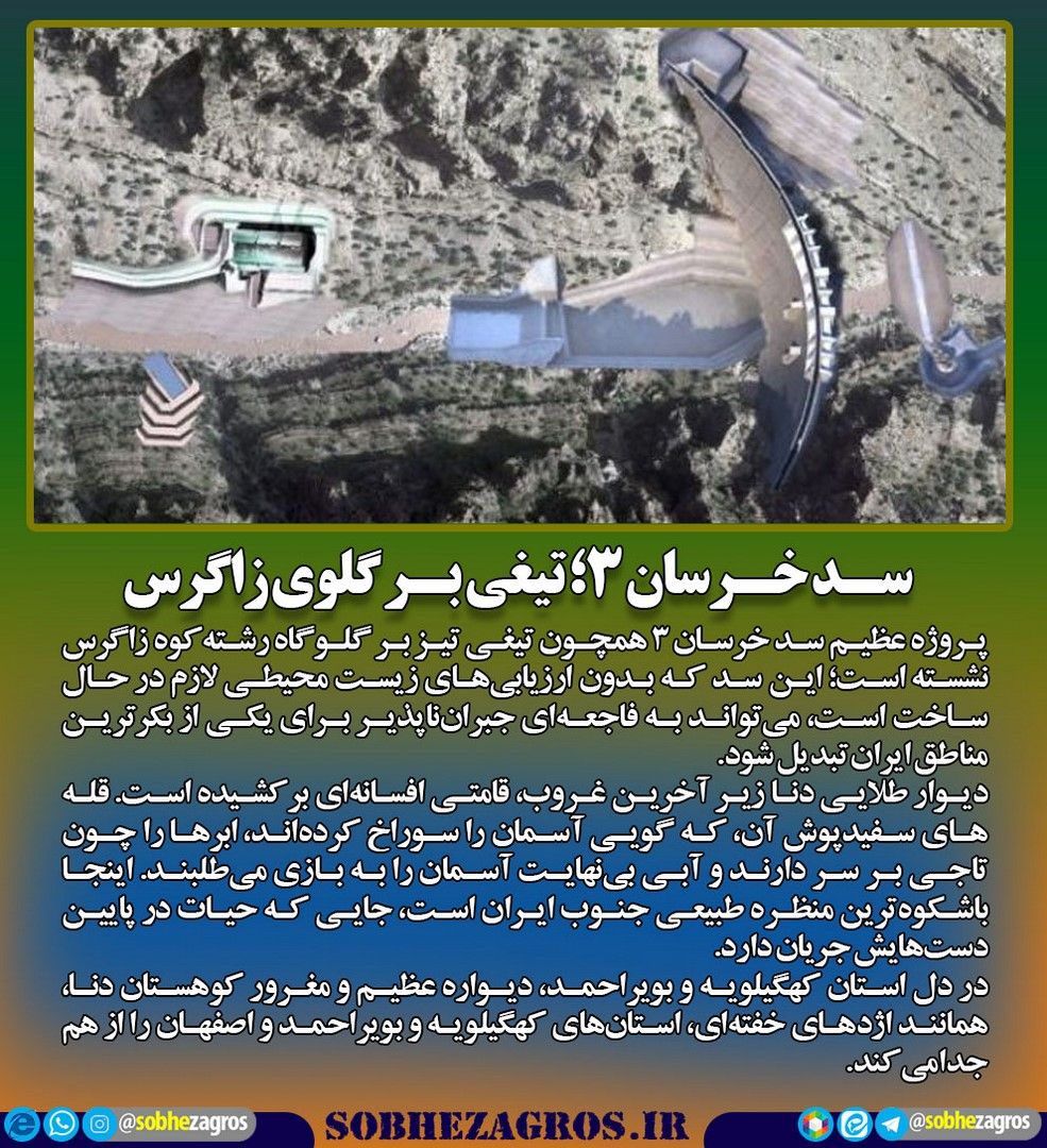 پروژه عظیم سد خرسان ۳ همچون تیغی تیز بر گلوگاه رشتهکوه زاگرس نشسته است؛ این سد که بدون ارزیابیهای زیست محیطی لازم در حال ساخت است، میتواند به فاجعهای جبرانناپذیر برای یکی از بکرترین مناطق ایران تبدیل شود.(اینجا)