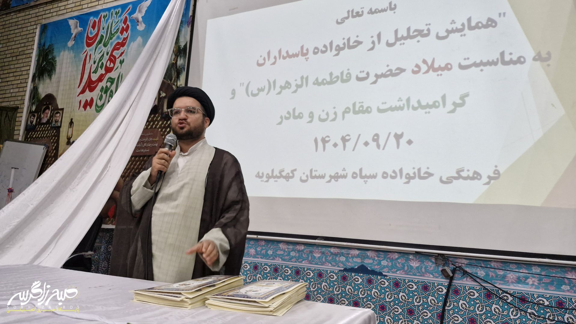 به گزارش پایگاه خبری تحلیلی «صبحزاگرس» در جشن روز مادر که روز پنجشنبه با حضور جمعی از خانوادهها و بسیجیان در حسینیه ثارالله دهدشت برگزار شد، حجتالاسلام باقر موسویعارف با اشاره به جایگاه والای حضرت فاطمه زهرا(س) گفت: پیامبر اکرم(ص) برای ایجاد انقلاب مبعوث شد و این انقلاب با میلاد حضرت زهرا(س) تکمیل گردید. در زمانی که دختران را ننگ میدانستند و زنده به گور میکردند، خداوند به پیامبر دختری عطا کرد که خیر کثیر عالم در وجود اوست.