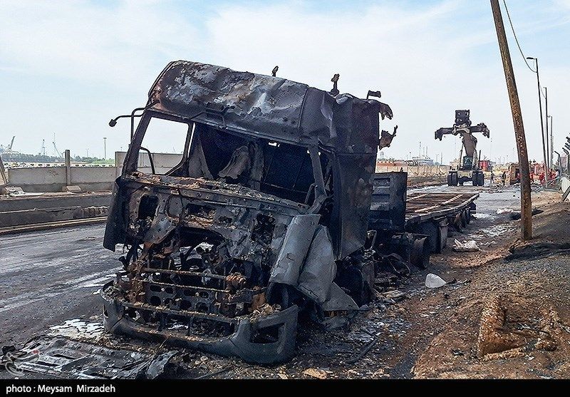 خسارات انفجار در اسکله شهید رجایی - بندرعباس