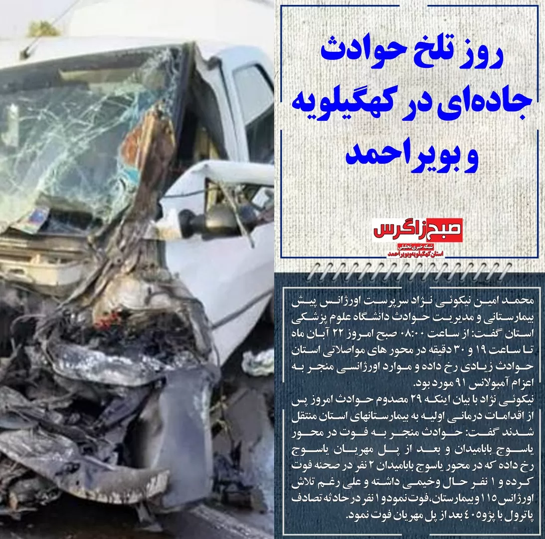 به گزارش صبح زاگرس،موضع امامجمعه گچساران درخصوص جذب نیرو درپتروشیمی!،شهرداری یاسوج همچنان سنگین و کند،کودککشی رژیمصهیونیستی ملتها را به خشم آوردهاست،نقشه راه جبهه مقاومت در نبرد با صهیونیستها وروز تلخ حوادث جادهای در کهگیلویه و بویراحمد از جمله فتونیوز های صبح زاگرس است.