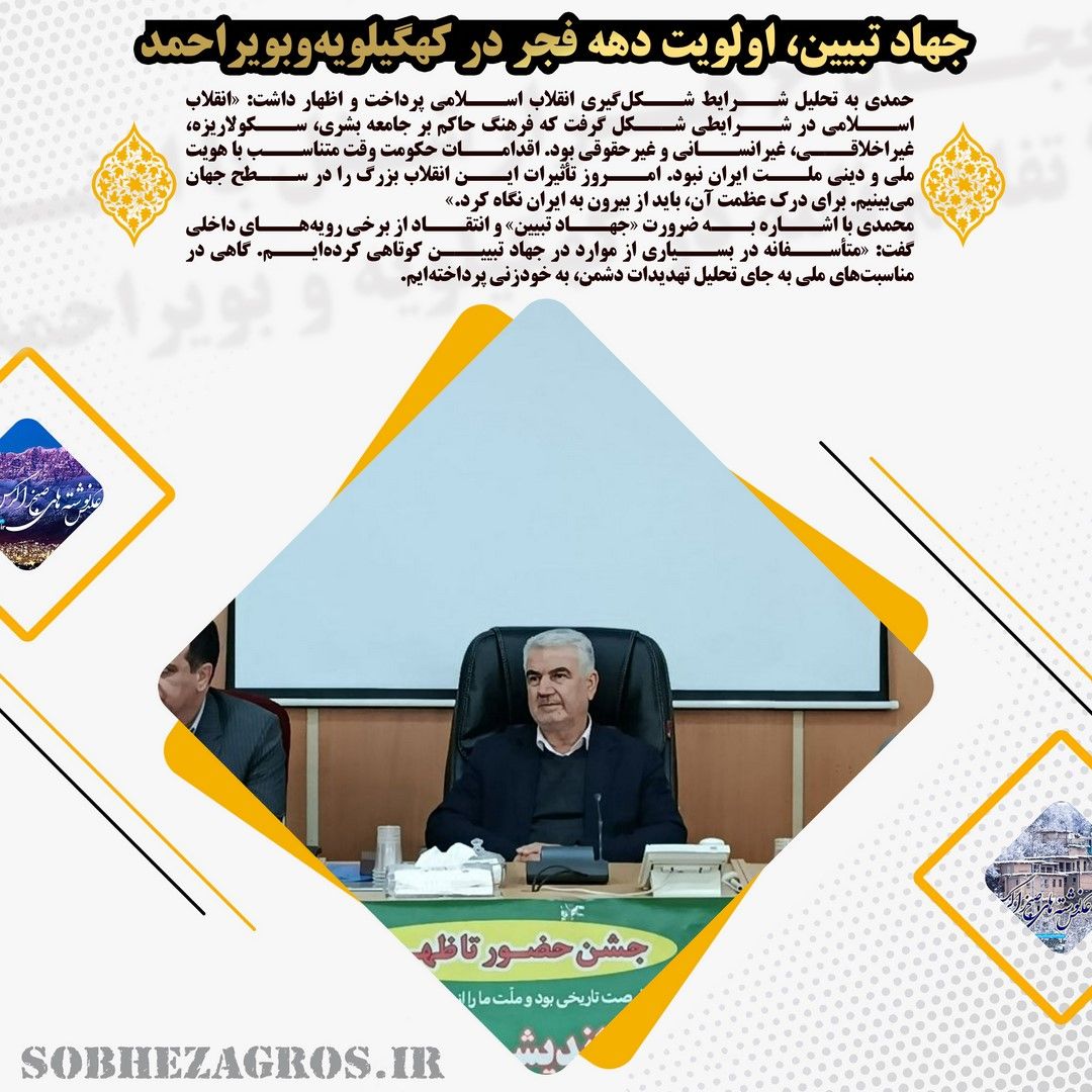 در نشست هماهنگی دهه فجر انقلاب اسلامی در کهگیلویه و بویراحمد، مسئولان استانی بر اولویتبندی «جهاد تبیین» بهعنوان محور اصلی برنامههای این ایام تأکید و بر برگزاری باشکوه راهپیمایی یومالله ۲۲ بهمن و دیگر مراسم تأکید کردند.(اینجا)
