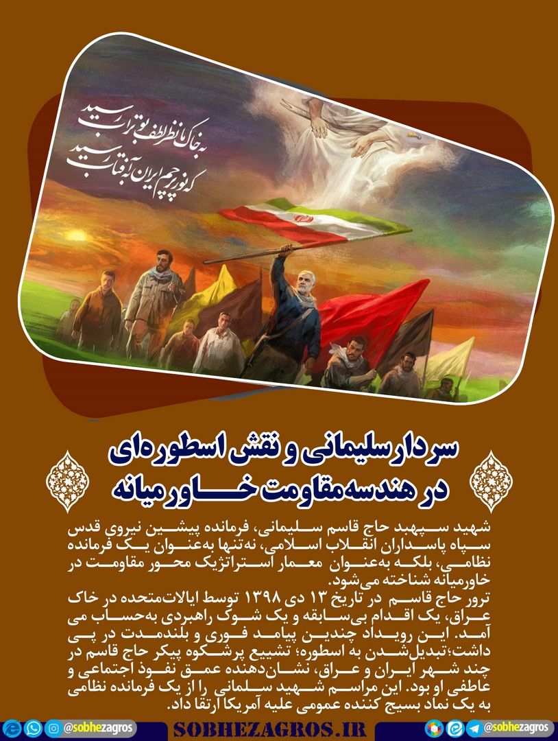 شهید سپهبد حاج قاسم سلیمانی، فرمانده پیشین نیروی قدس سپاه پاسداران انقلاب اسلامی، نهتنها بهعنوان یک فرمانده نظامی، بلکه بهعنوان معمار استراتژیک محور مقاومت در خاورمیانه شناخته میشود.(اینجا)