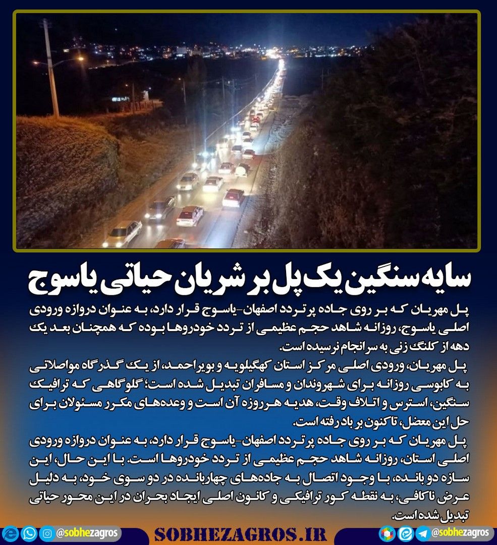 به گزارش پایگاه خبری تحلیلی «صبح زاگرس»؛یاسوج؛ شهری در انتظار چهار دیواری، یاسوج و فرودگاهی که در زمان گم شد، مطالبهای حیاتی برای بیش از ۵۰ هزار نفر،سایه سنگین یک پل بر شریان حیاتی یاسوج از جمله عکس نوشته های صبح زاگرس است.