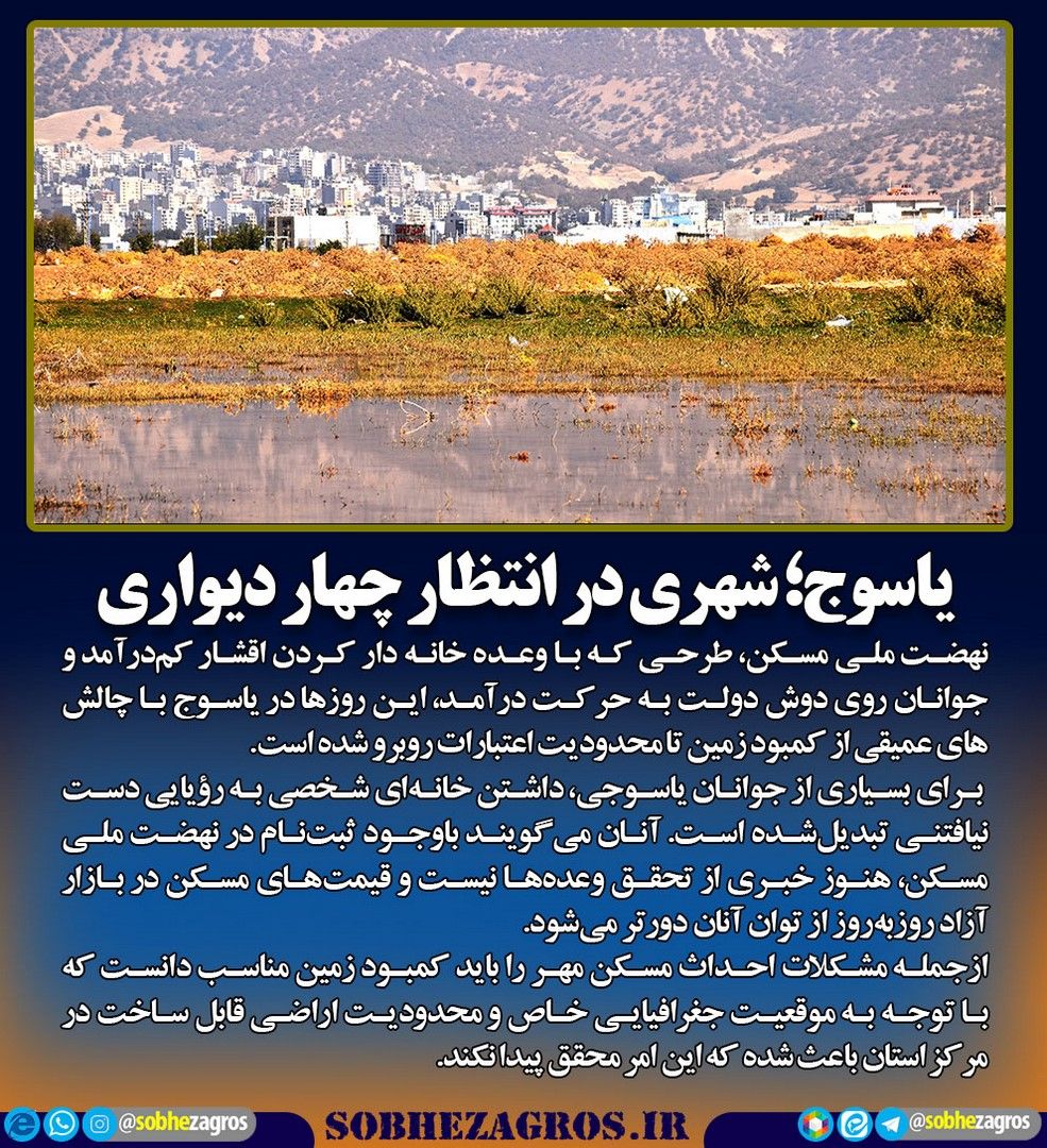 نهضت ملی مسکن، طرحی که با وعده خانه دار کردن اقشار کمدرآمد و جوانان روی دوش دولت به حرکت درآمد، این روزها در یاسوج با چالشهای عمیقی از کمبود زمین تا محدودیت اعتبارات روبرو شده است.(اینجا)