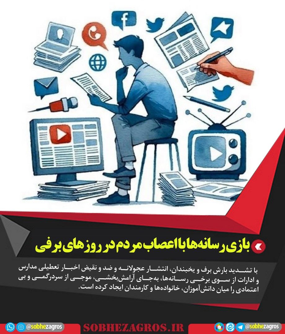 با تشدید بارش برف و یخبندان، انتشار عجولانه و ضد و نقیض اخبار تعطیلی مدارس و ادارات از سوی برخی رسانهها، بهجای آرامشبخشی، موجی از سردرگمی و بیاعتمادی را میان دانشآموزان، خانوادهها و کارمندان ایجاد کرده است.(اینجا)