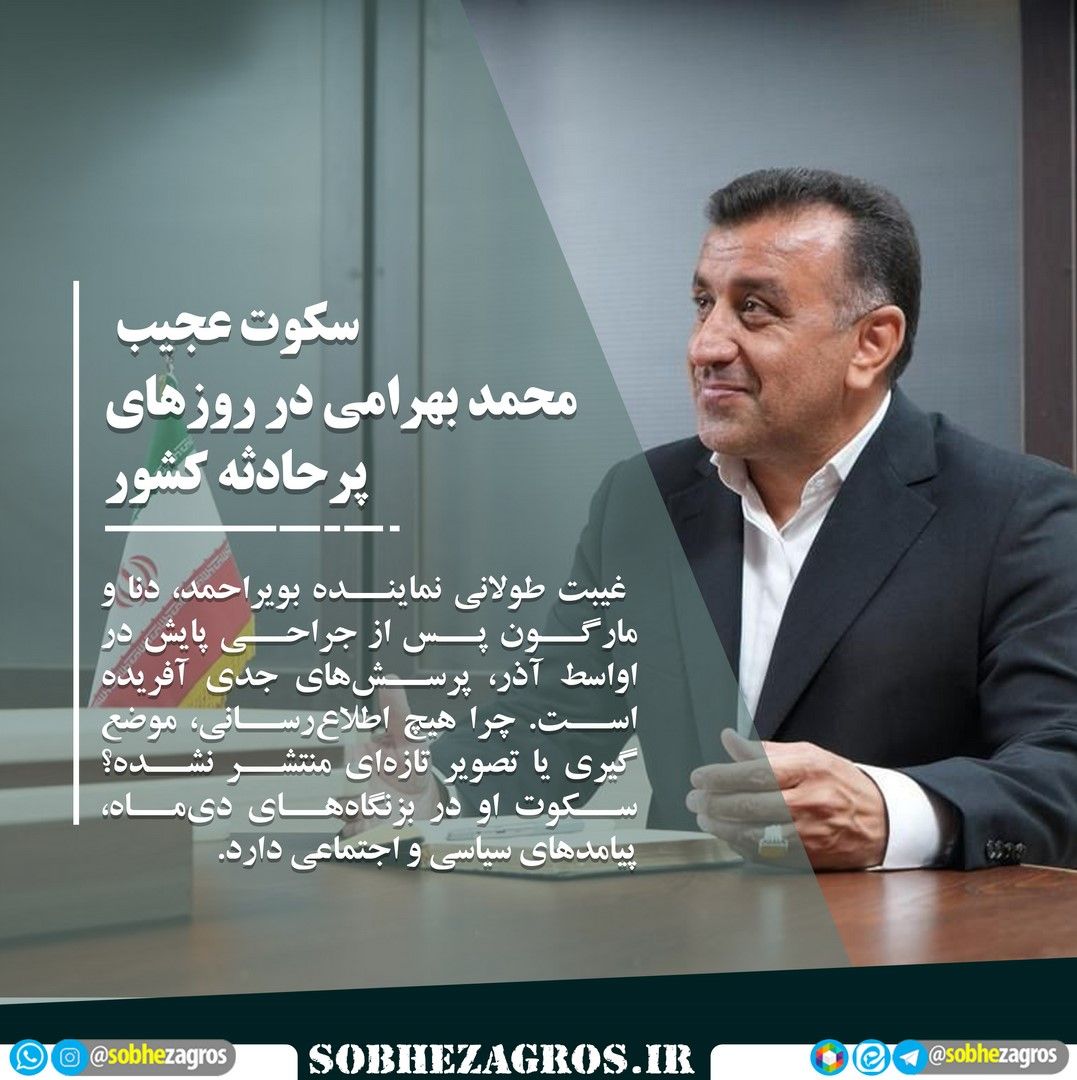 غیبت طولانی نماینده بویراحمد، دنا و مارگون پس از جراحی پایش در اواسط آذر، پرسشهای جدی آفریده است. چرا هیچ اطلاعرسانی، موضعگیری یا تصویر تازهای منتشر نشده؟ سکوت او در بزنگاههای دیماه، پیامدهای سیاسی و اجتماعی دارد.(اینجا)