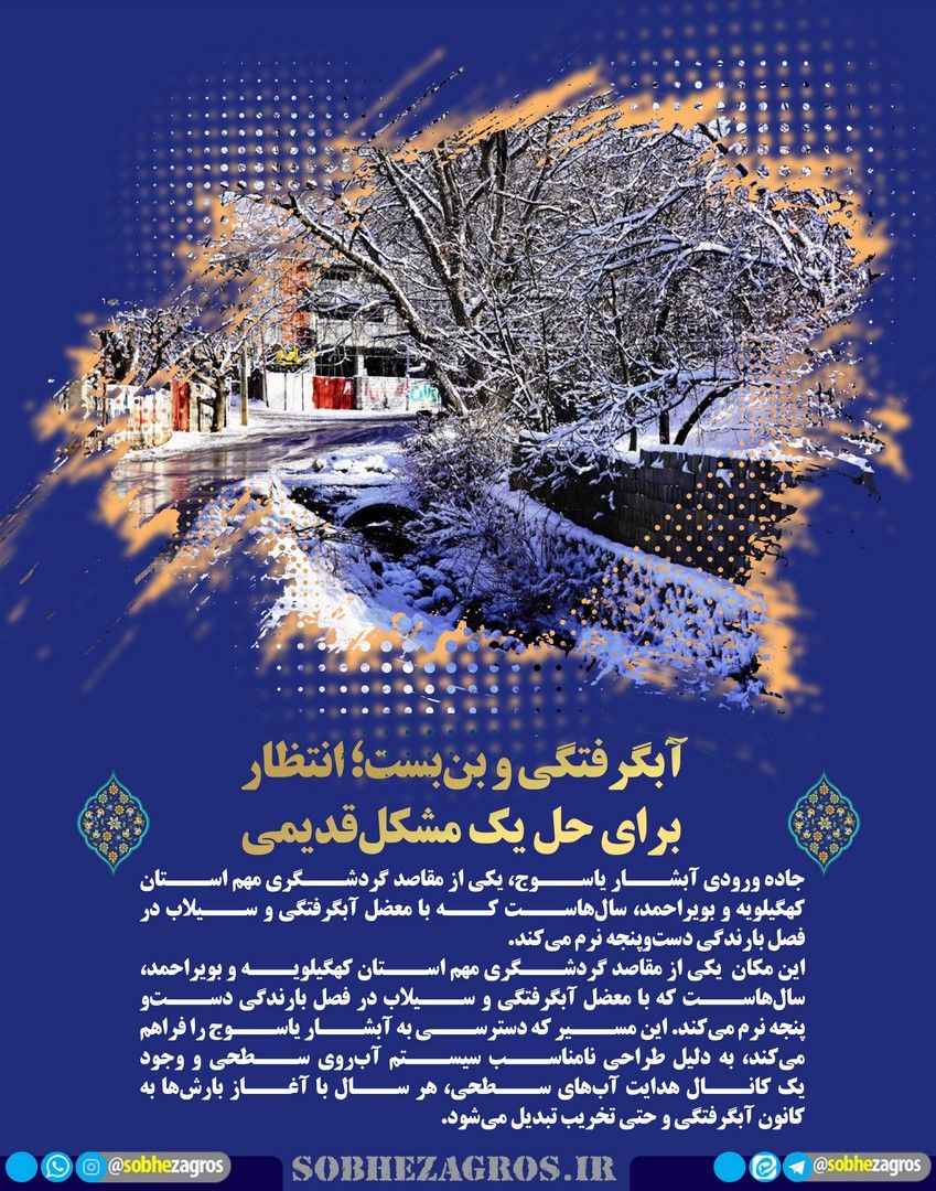 جاده ورودی آبشار یاسوج، یکی از مقاصد گردشگری مهم استان کهگیلویه و بویراحمد، سالهاست که با معضل آبگرفتگی و سیلاب در فصل بارندگی دستوپنجه نرم میکند.(اینجا)