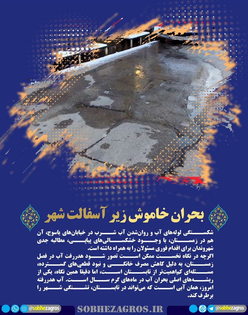 شکستگی لولههای آب و روانشدن آب شرب در خیابانهای یاسوج، آنهم در زمستان، با وجود خشکسالیهای پیاپی، مطالبه جدی شهروندان برای اقدام فوری مسئولان را به همراه داشته است.(اینجا)