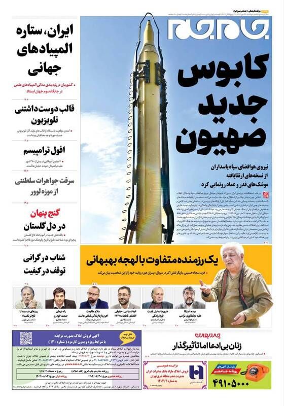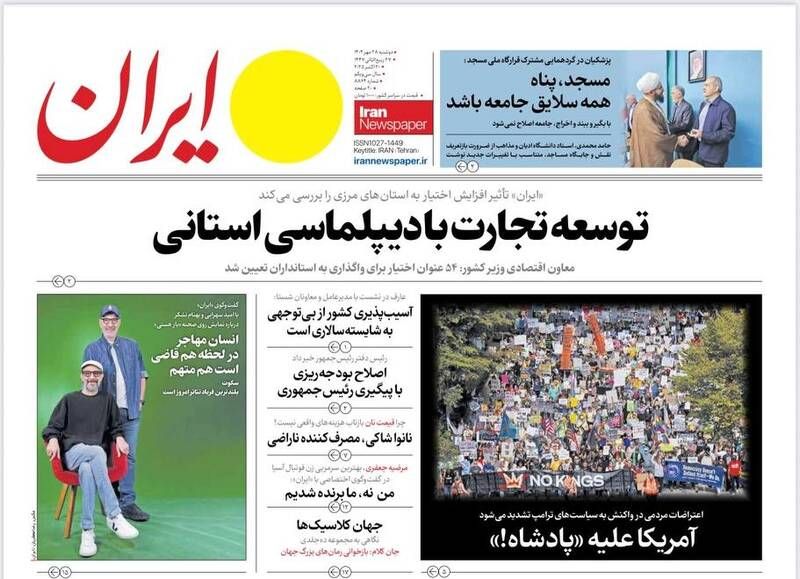 صفحه نخست روزنامههای دوشنبه ۲۸ مهر ۱۴۰۴