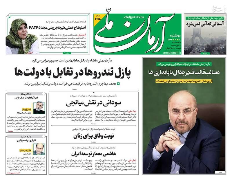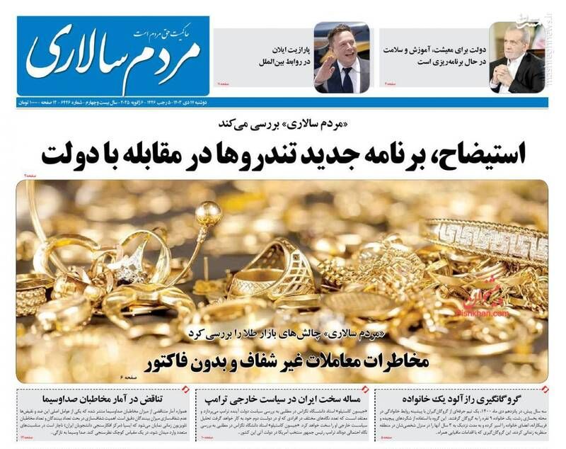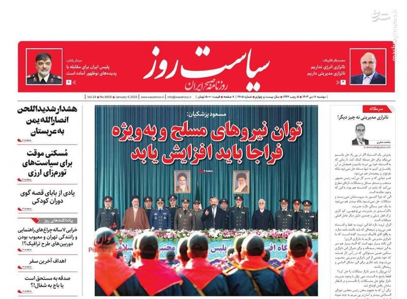 عبور از مشکلات با «زاویهدارهای ناکارآمد» ممکن نیست، ارز و نقدینگی نسخه گرانی دارو نوشتند، چشم شرکتیها به قول و قرار دولتیها، تیتر برخی از روزنامههای دوشنبه ۱۷ دی ماه ۱۴۰۳ است.