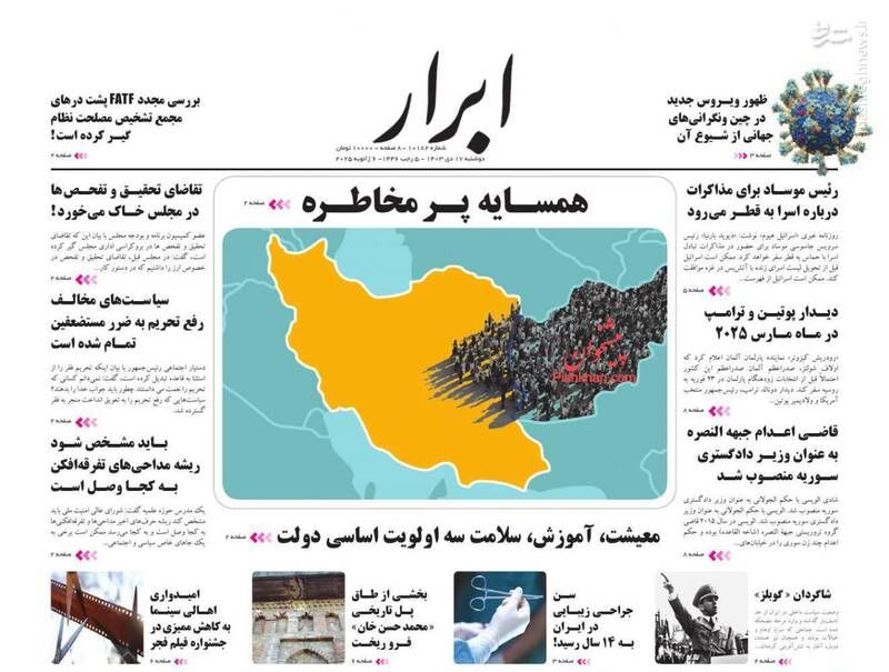 صفحه نخست روزنامههای دوشنبه ۱۷ دی ۱۴۰۳