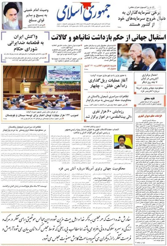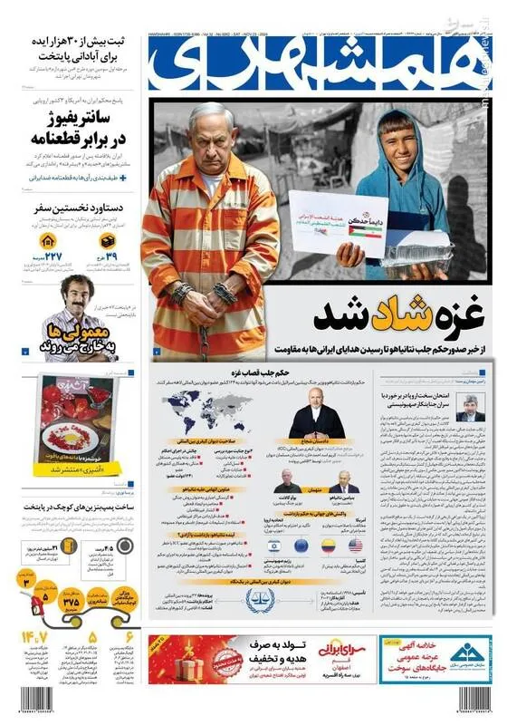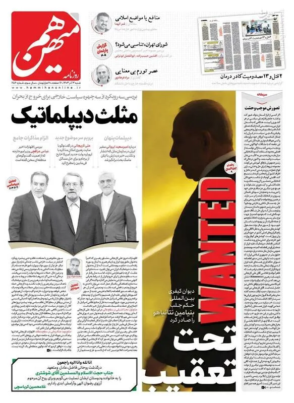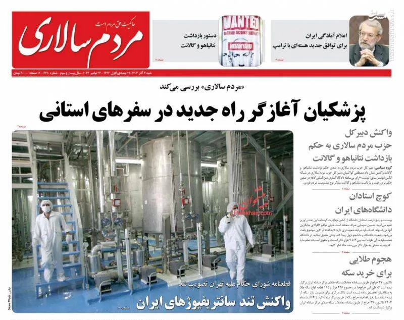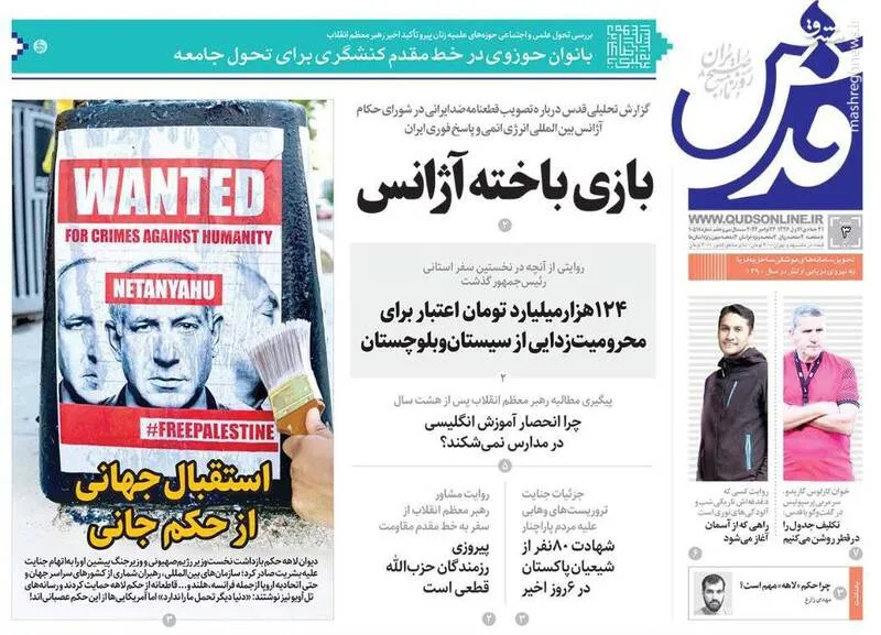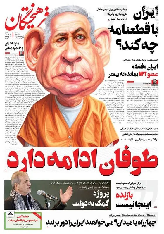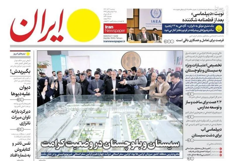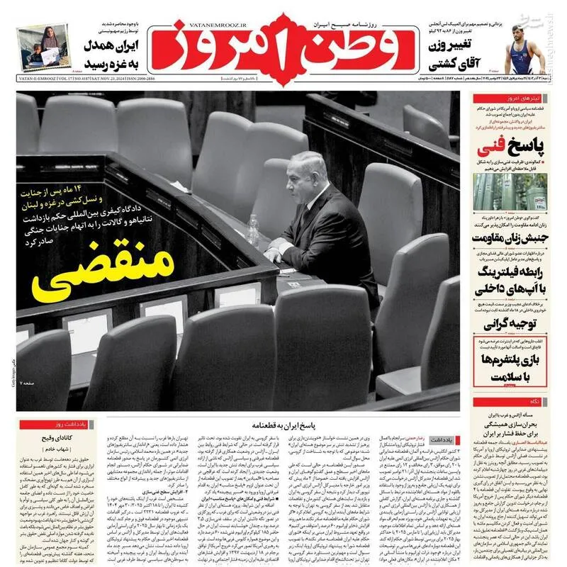 به اقدامات خصمانه غرب پاداش دادید قطعنامه تحویل گرفتیم!، اعتبار ۱۲۴ هزار میلیاردی برای توسعه سیستان و بلوچستان، بازی باخته آژانس، تیتر برخی از روزنامههای شنبه سوم آذرماه ۱۴۰۳ است.