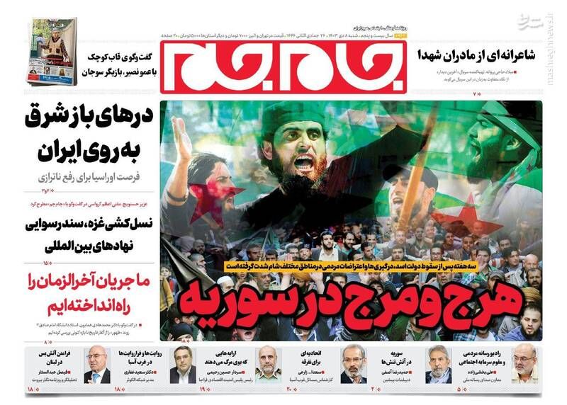 صفحه نخست روزنامههای شنبه ۸ دی ۱۴۰۳