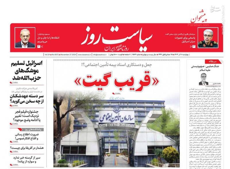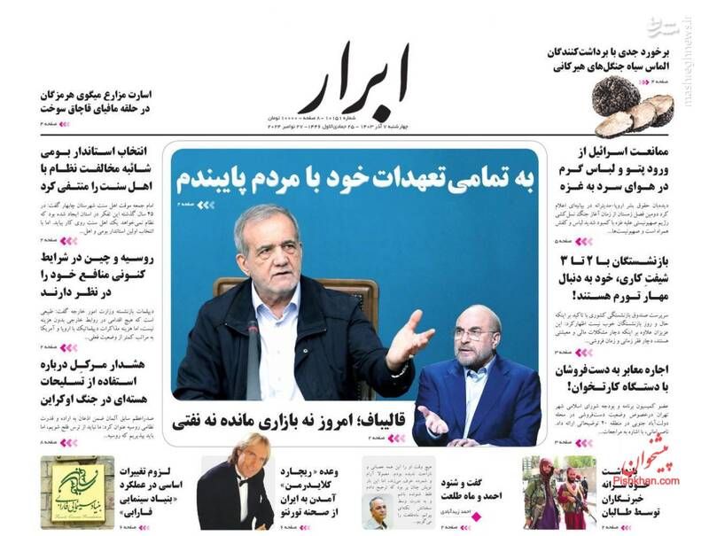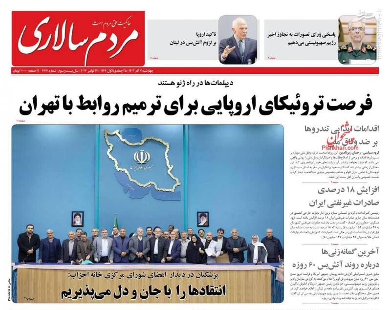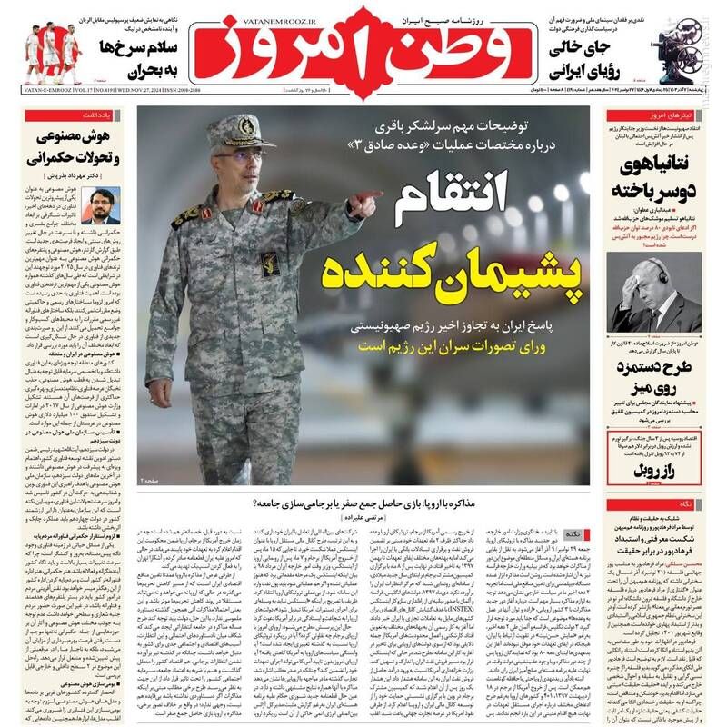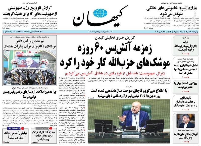 زمزمه آتشبس ۶۰ روزه موشکهای حزبالله کار خود را کرد، اعتراف به شکست، منابع انرژی پایدار، برق ناپایدار!، تیتر برخی از روزنامههای چهارشنبه ۷ آذرماه ۱۴۰۳ است.