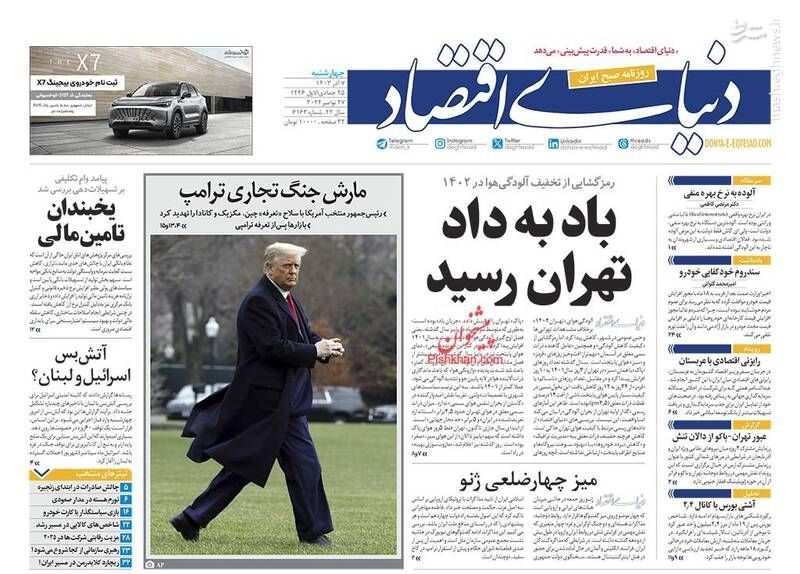 صفحه نخست روزنامههای چهارشنبه ۷ آذر ۱۴۰۳