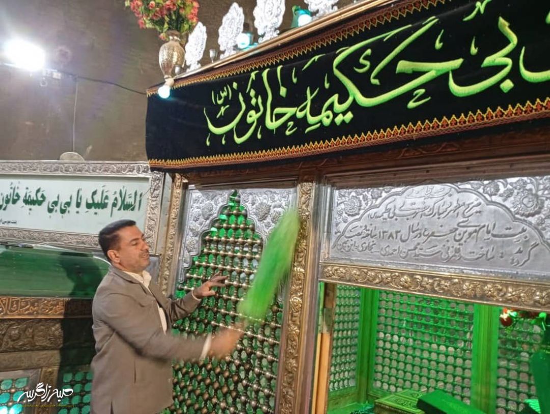 در این آیین، حاضران با قرائت دعا و ذکر توسل، ضمن غبارروبی و عطرافشانی ضریح مطهر، ارادت خود را به ساحت مقدس این بانوی جلیلالقدر ابراز کردند.