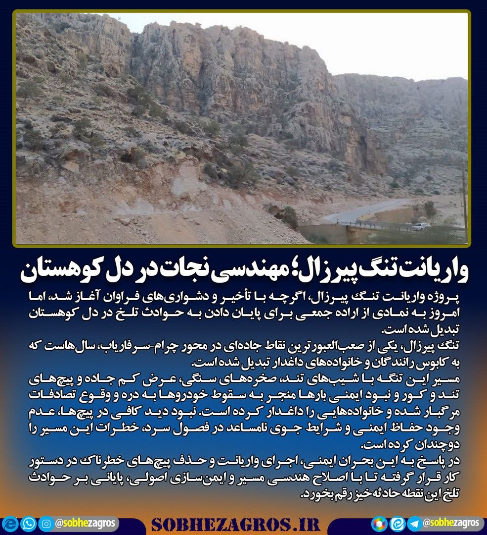 پروژه واریانت تنگ پیرزال، اگرچه با تأخیر و دشواریهای فراوان آغاز شد، اما امروز به نمادی از اراده جمعی برای پایان دادن به حوادث تلخ در دل کوهستان تبدیل شده است.(اینجا)