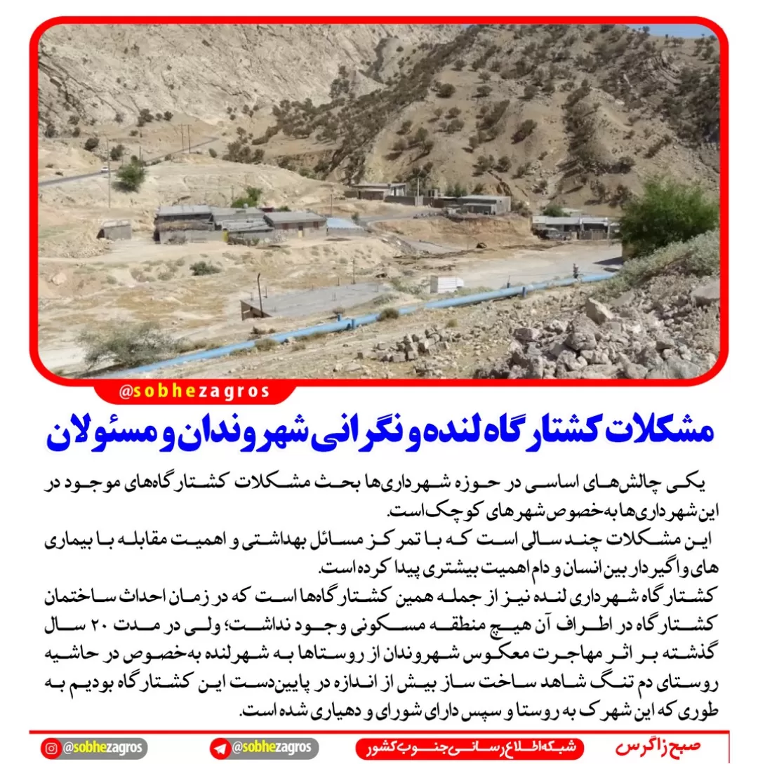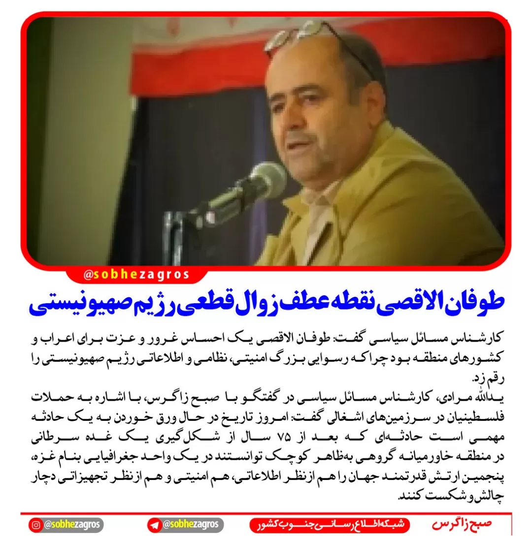 به گزارش صبح زاگرس،شکایت نماینده مجلس از غلامرضا تاجگردون،این اقدام شرکت آبفا کهگیلویهوبویراحمد را قضاوت کنید، مشکلات کشتارگاه لنده و نگرانی شهروندان و مسئولان،طوفان الاقصی مقدمه نابودی رژیم صهیونیستی است وطوفان الاقصی نقطه عطف زوال قطعی رژیم صهیونیستی از جمله فتونیوز های صبح زاگرس است.