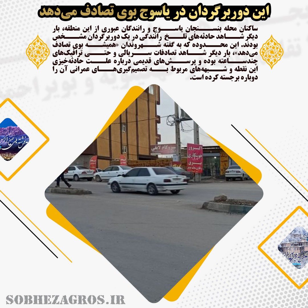 ساکنان محله بنسنجان یاسوج برای چندمین بار در ماههای اخیر شاهد تکرار یک صحنه تصادف بودند؛ خودروهای واژگون شده، آژیر آمبولانسها و خانوادههای نگران از سانحه در یک دوربرگردان حادثهخیز در ورودی شهر یاسوج.(اینجا)