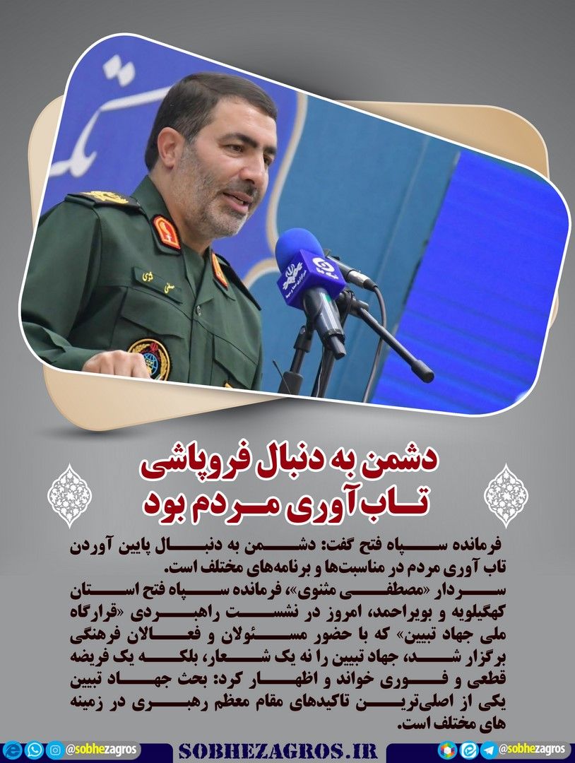 فرمانده سپاه فتح گفت: دشمن به دنبال پایین آوردن تاب آوری مردم در مناسبتها و برنامههای مختلف است.(اینجا)