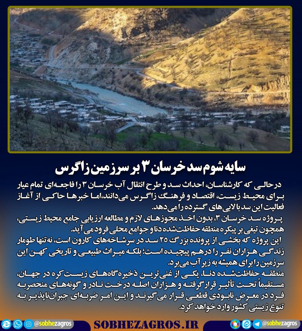 درحالی که کارشناسان، احداث سد و طرح انتقال آب خرسان ۳ را فاجعهای تمام عیار برای محیط زیست، اقتصاد و فرهنگ زاگرس میدانند،اما خبرها حاکی از آغاز فعالیت این سد با لابیهای گسترده را میدهد.(اینجا)