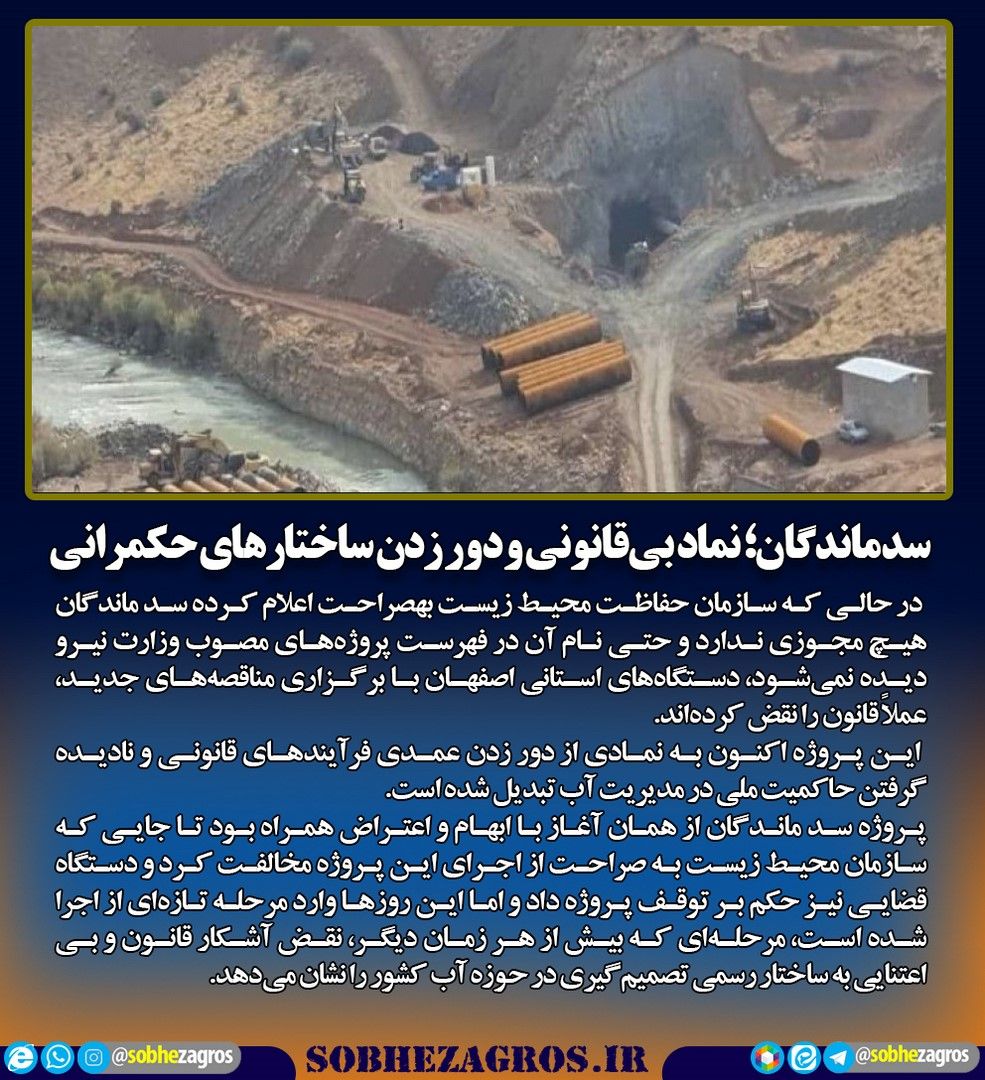سازمان حفاظت محیط زیست به صراحت اعلام کرده سد ماندگان هیچ مجوزی ندارد و حتی نام آن در فهرست پروژههای مصوب وزارت نیرو دیده نمیشود، دستگاههای استانی اصفهان با برگزاری مناقصههای عملاً قانون را نقض کردهاند.(اینجا)