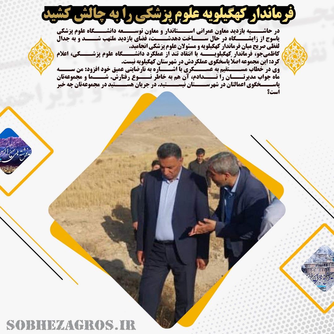 فرماندار کهگیلویه در حاشیه بازدید مسئولان استانی از زایشگاه دهدشت، از عملکرد دانشگاه علومپزشکی انتقاد کرد و گفت: این مجموعه پاسخگوی عملکردش در شهرستان ما نیست.(اینجا)
