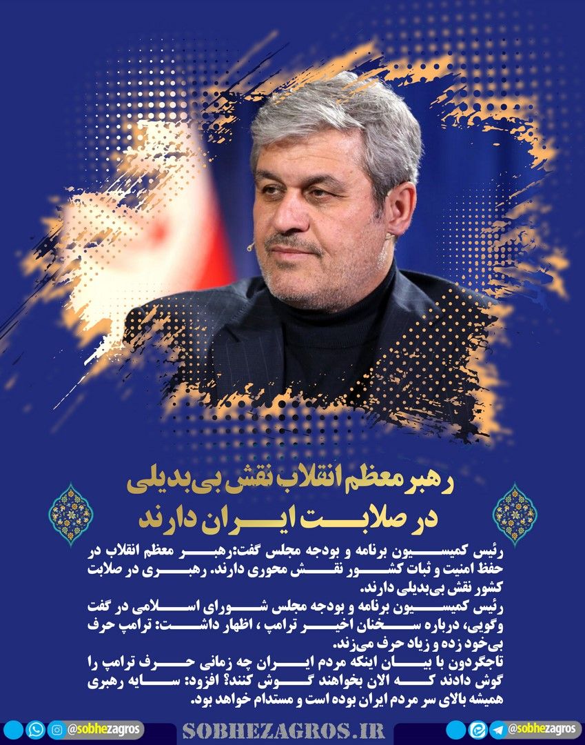 رئیس کمیسیون برنامه و بودجه مجلس گفت:رهبر معظم انقلاب در حفظ امنیت و ثبات کشور نقش محوری دارند. رهبری در صلابت کشور نقش بیبدیلی دارند.(اینجا)