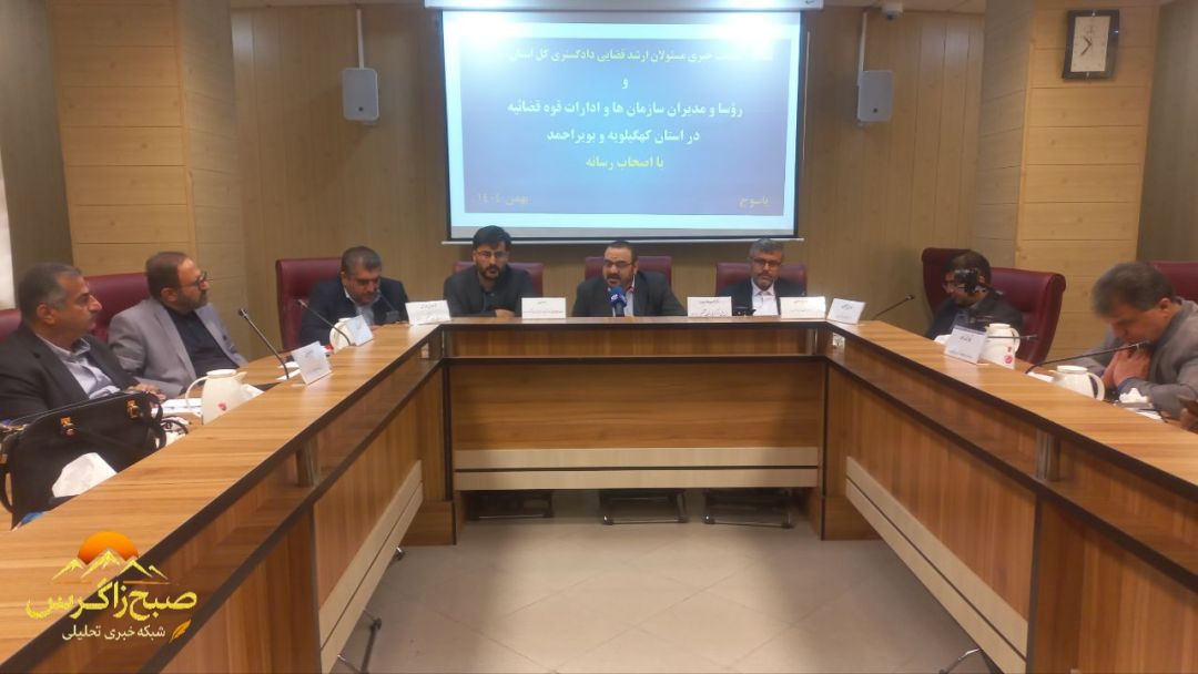 به گزارش خبرنگار پایگاه خبری تحلیلی «صبح زاگرس» نشست خبری مسئولان ارشد قضایی اداره کل دادگستری کهگیلویه و بویراحمد، رؤسا و مدیران سازمانها و ادارات قوه قضائیه در استان روز یکشنبه مورخ ۱۹ بهمنماه ۱۴۰۴ در سالن جلسات اداره کل، با اصحاب رسانه برگزار شد.