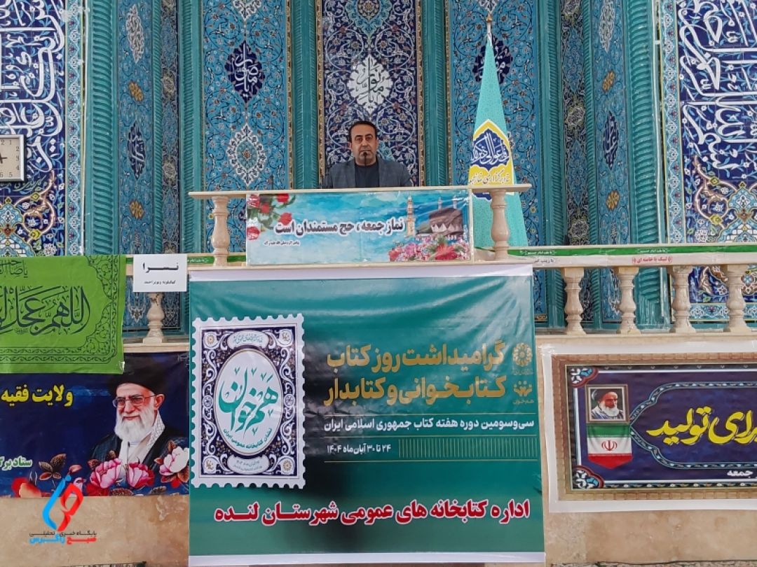 حضور گسترده مردم در نماز عبادی سیاسی جمعه این هفته عجین شده است با هفته کتاب و کتابخوانی که برپایی نمایشگاه کتاب و سخنرانی رئیس اداره کتاب خانههای عمومی شهرستان لنده پیش از خطبههای نماز همراه بود.