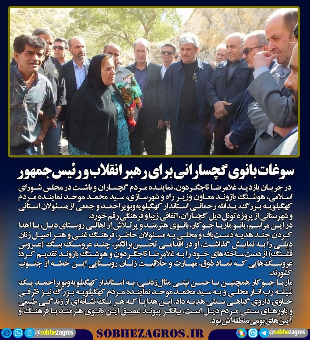 صبح زاگرس در این قسمت از عکس نوشتههای خود به هدیه بانوی گچسارانی به رهبر انقلاب و پزشکیان رئیس جمهور اختصاص داده شده است.